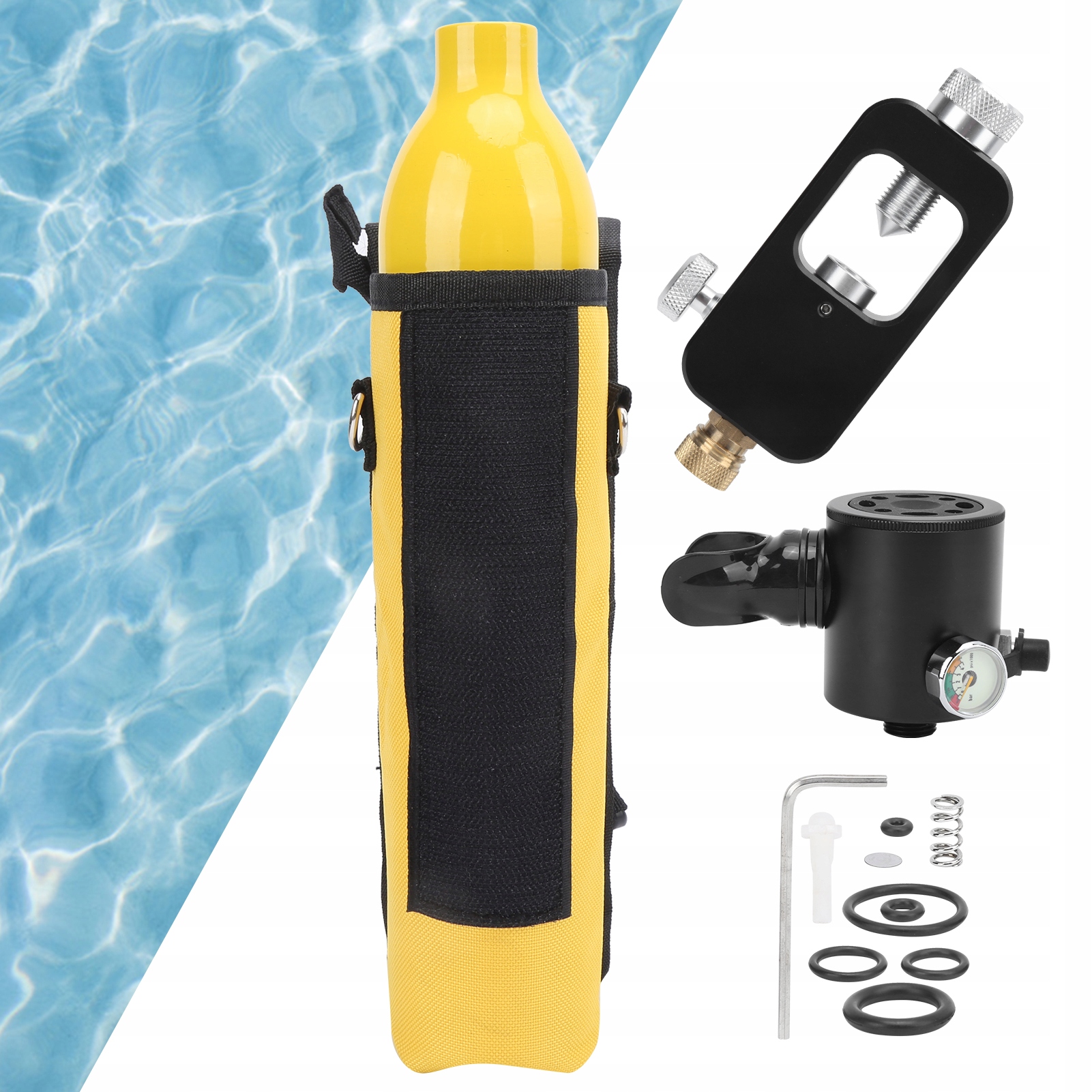 Дыхательный аппарат для подводного плавания DIDEEP объемом 0,5 л с кислородным баллоном для комплекта для подводного плавания с адаптером (желтый баллон, желтая сумка для хранения)