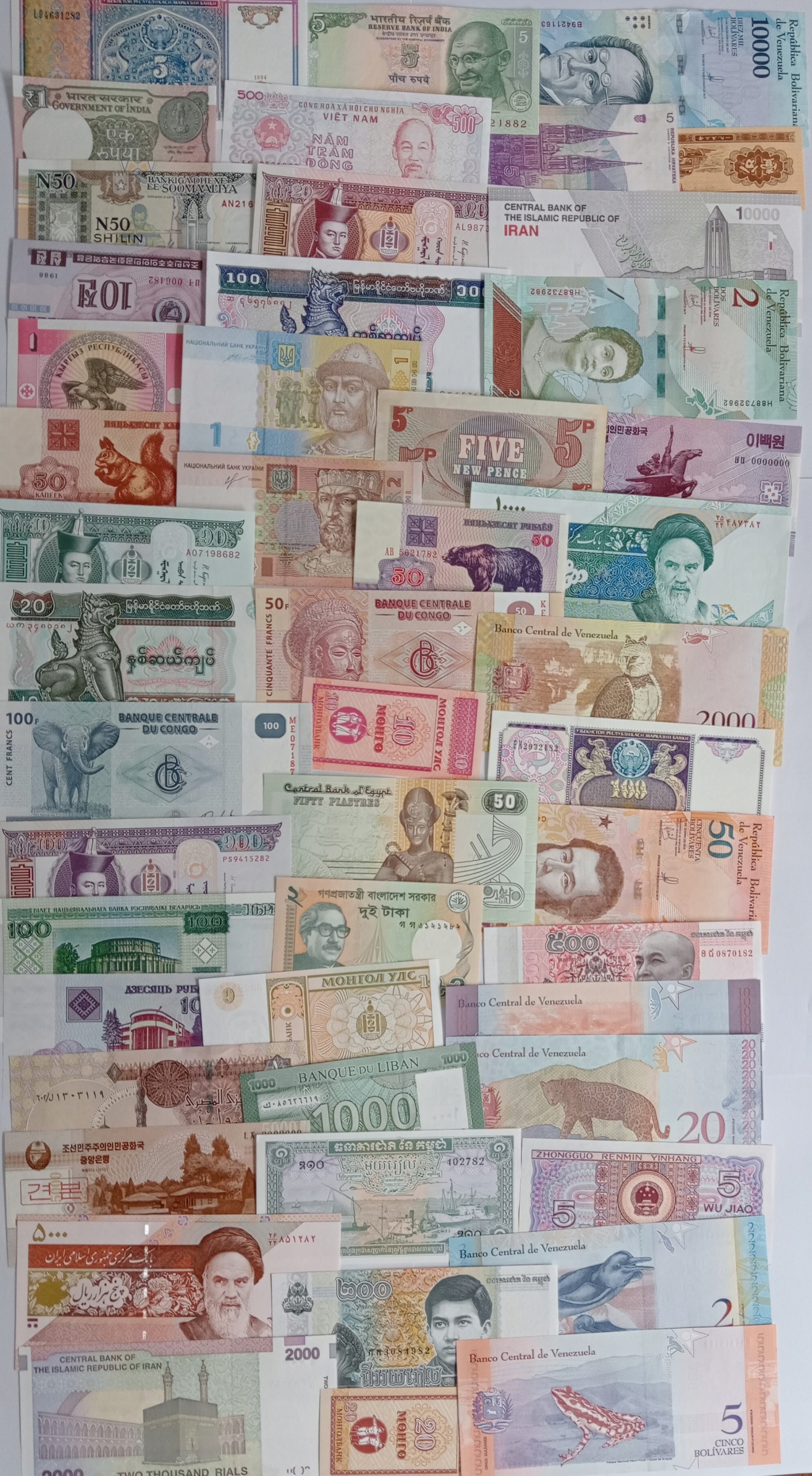 Набор банкнот - UNC Европа, Америка PD, Азия и Африка