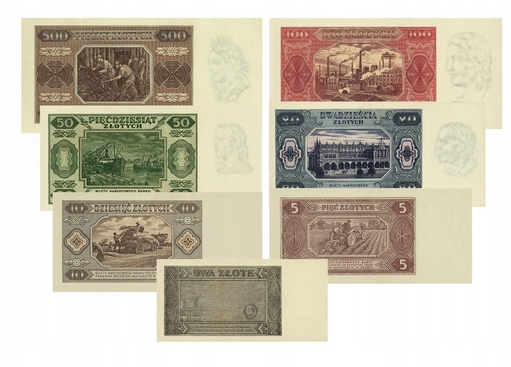 НАБІР БАНКНОТ PRL 2 -500 PLN 1948 UNC КОПІЇ - L43