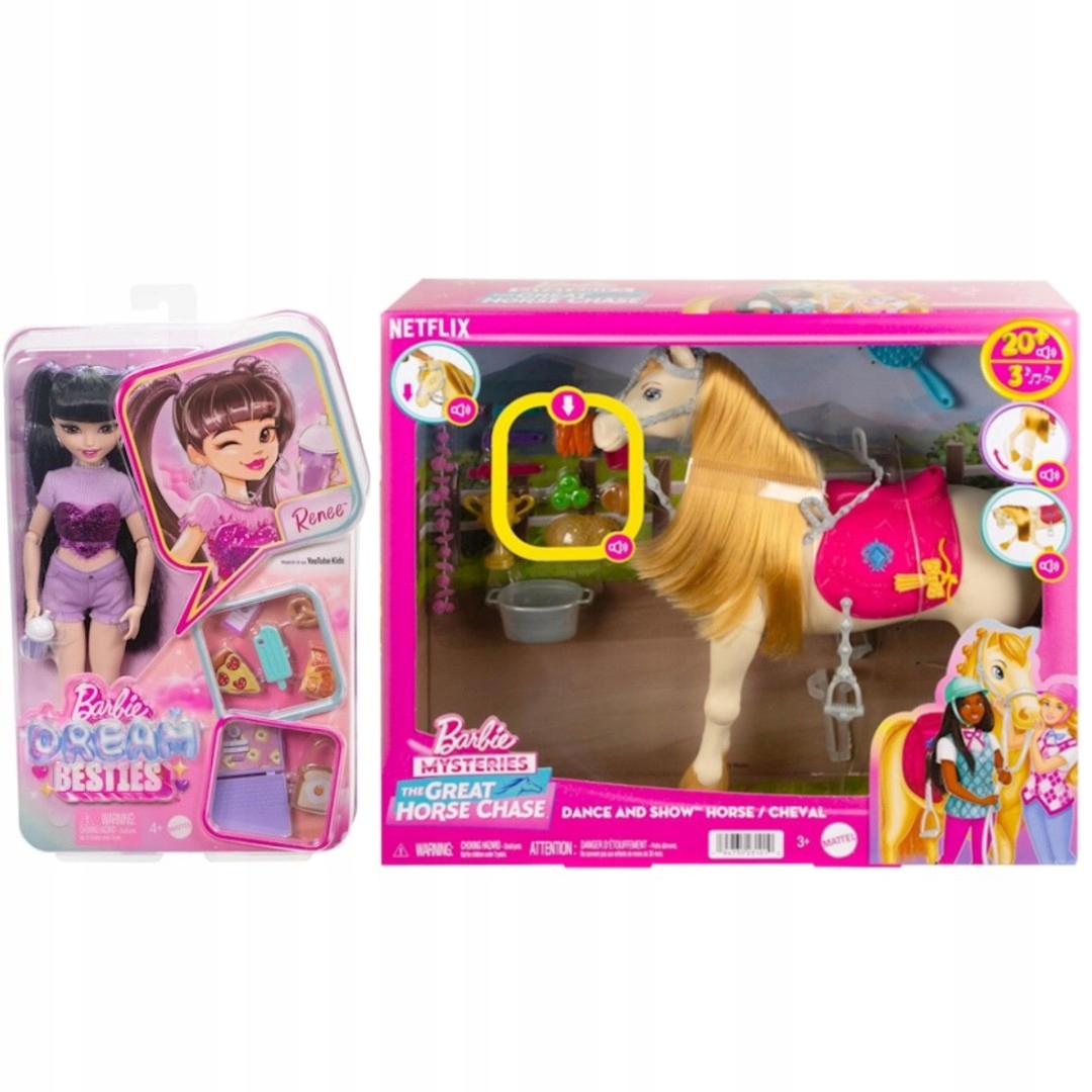 НАБОР БАРБИ КУКЛА MALIBU BESTIES + ИНТЕРАКТИВНАЯ ЛОШАДЬ ТОРНАДО HYC24 HXJ42
