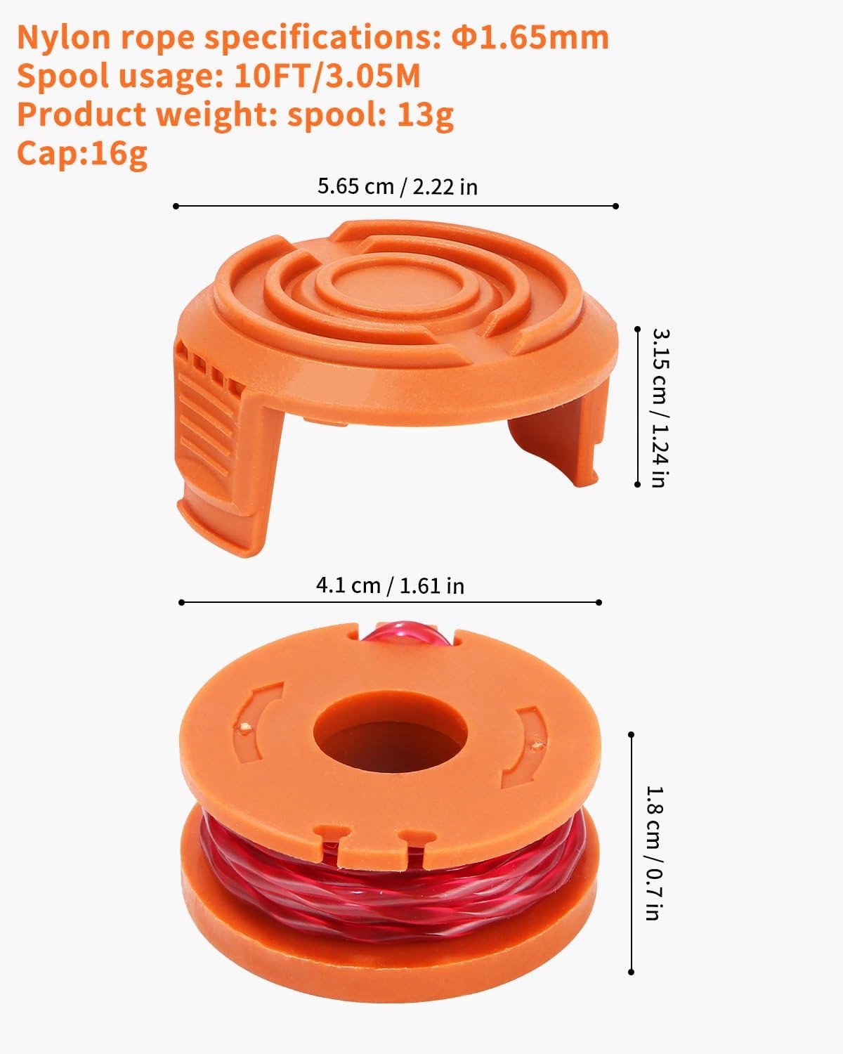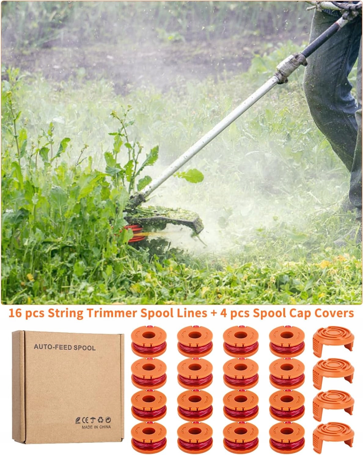 Наш продукт содержит 16 прочных запасных катушек для кузнечиков Worx, каждая веревка из косилки составляет 3 метра и диаметр 1,65 мм , достаточно для использования и замены