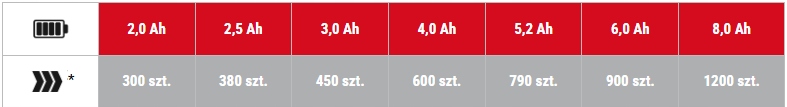 - Рекомендация для оптимальных результатов: батарея 2,5 Ах плюс и выше