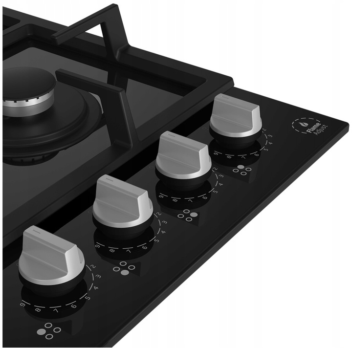 Газовая варочная панель оснащена конфоркой WOK, автоматическим отключением газа, эффективными газовыми горелками, встроенным в ручку запальником.