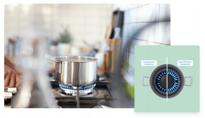 Не позволяйте напряженному дню лишить вас здоровой еды. Теперь вы можете приготовить любое блюдо быстрее и эффективнее на плите. Высокоэффективные газовые горелки используют меньше газа и позволяют готовить быстрее, чем стандартные горелки. Благодаря этому вы сможете быстро подать на стол любимые блюда даже в короткие сроки.