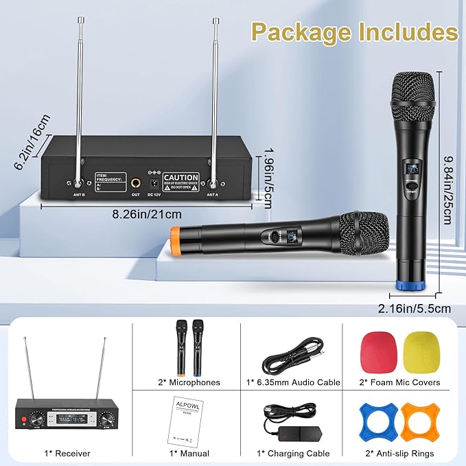 Беспроводной микрофон ALPOWL WXM, двойной профессиональный набор беспроводных микрофонов для караоке УВЧ с фиксированным приемником для домашнего караоке, встреч и вечеринок