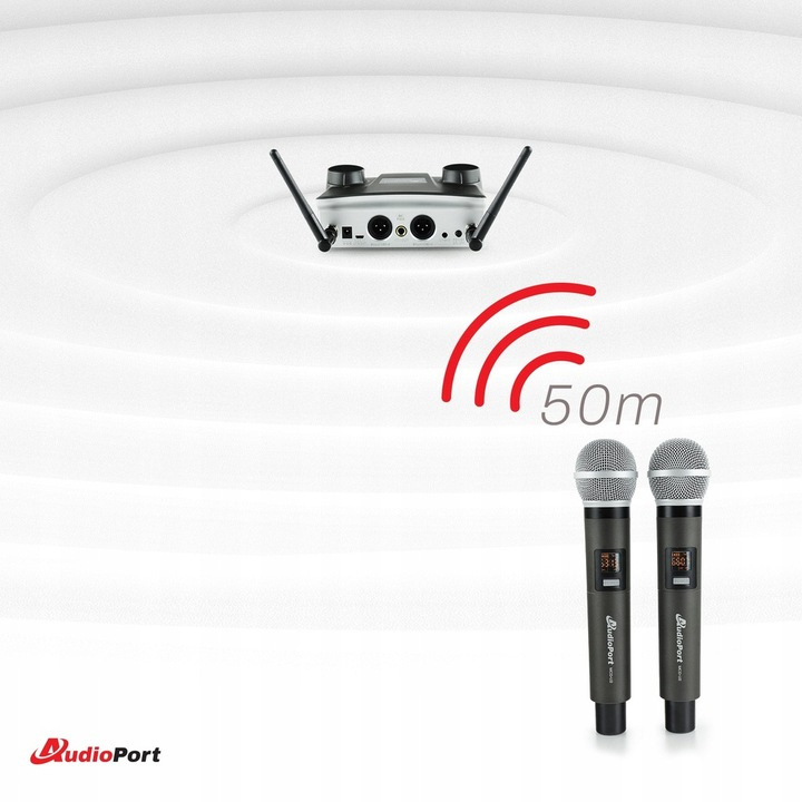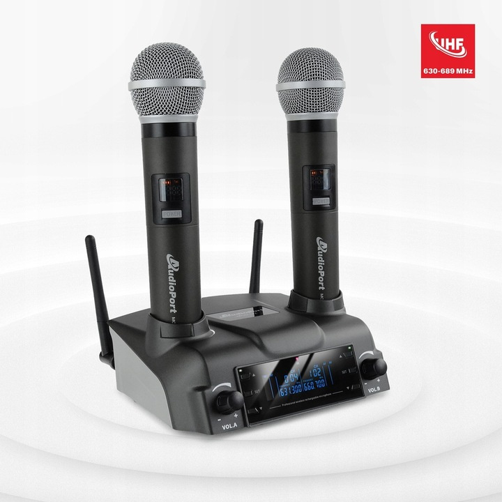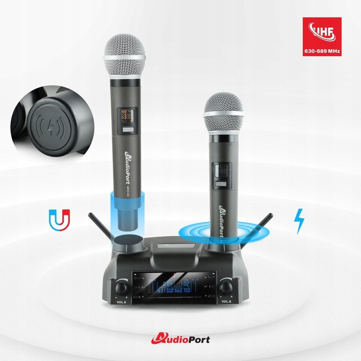 Audioport MCD-U2-это высококачественная беспроводная микрофона, которая включает в себя два динамических односторонних микрофона и базовую станцию, которая действует как приемник UHF и индукционное зарядное устройство. Система поддерживает широкую частотную полосу (UHF 630-689 МГц) с 100 частотными точками на каждом канале (A: 630-659 МГц, B: 660-689 МГц). Благодаря расширенным функциям, таким как автоматический частотный поиск и анти -совместная защита, этот набор идеально подходит для различных приложений, таких как выступления , караоке, речи, живые трансляции или преподавание.
