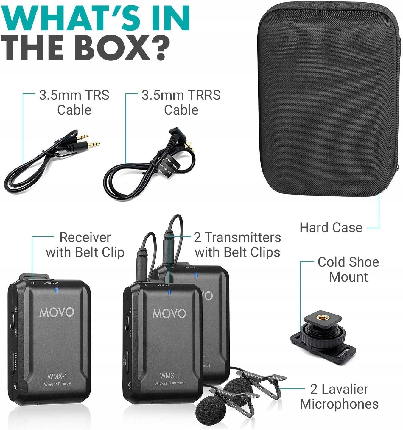 БЕСПРОВОДНАЯ МИКРОФОННАЯ СИСТЕМА MOVO WMX-1 DUO 2,4 ГГц, РАССТОЯНИЕ 60 м