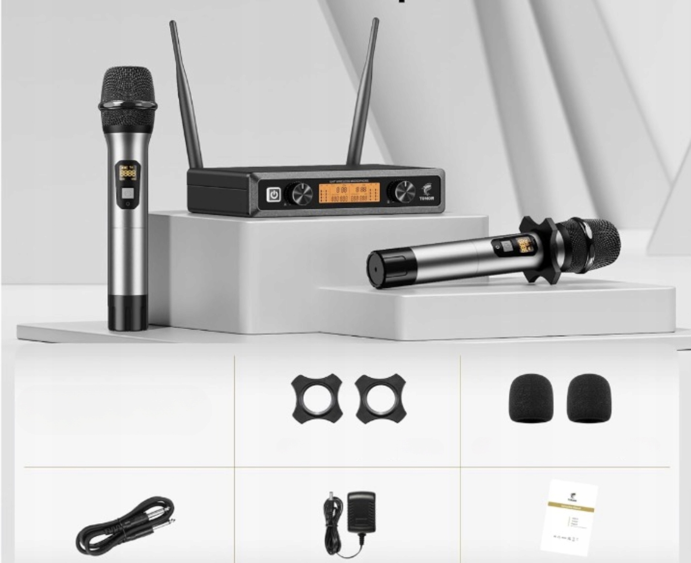 ✅ UHF Технология с диапазоном до 60 метров - обеспечивает стабильное соединение без помех, идеально подходящее для выступлений и концертов P> ✅ Двойной динамический ручной микрофоны - Отличное качество звука для пения, речей и караоке. Уровень непосредственно от приемника. - Быстрый запуск Без сложных технических настроек