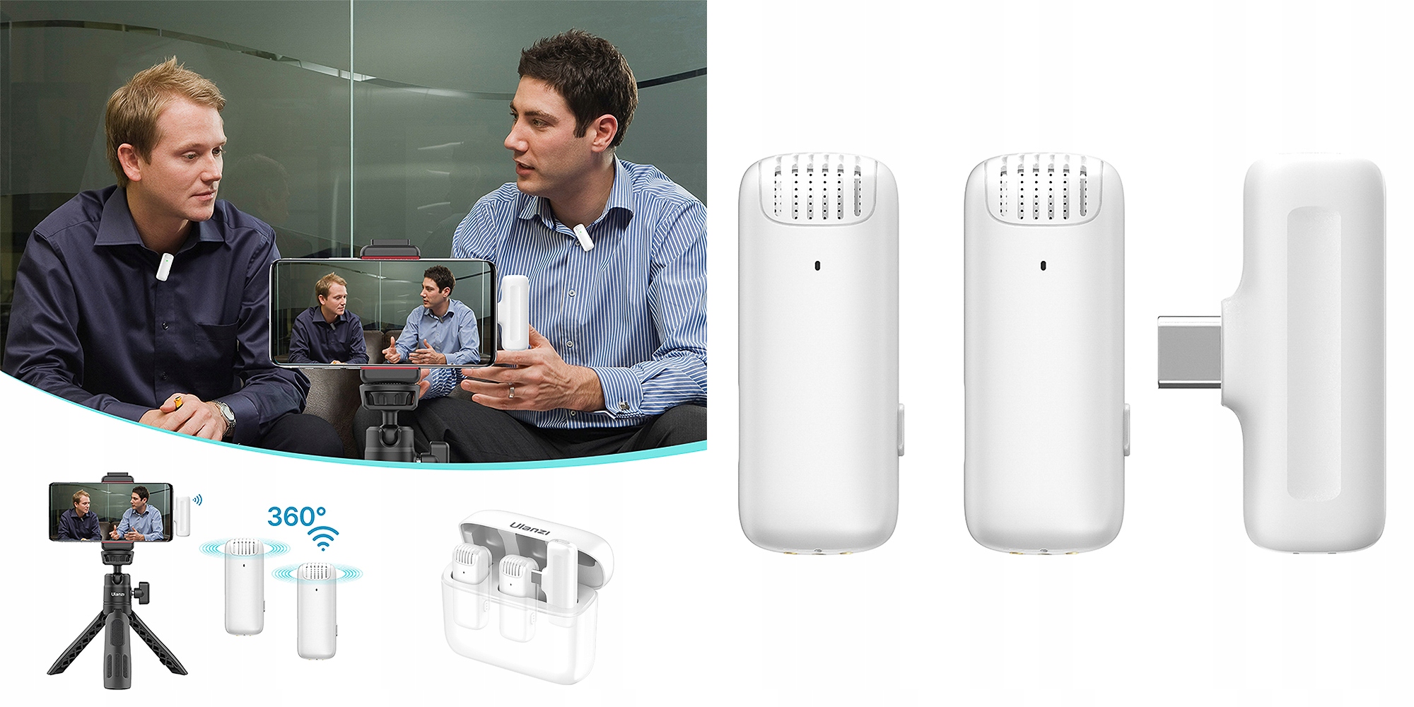 Ulanzi J12 Миниатюрные беспроводные микрофоны для отличного предложения для создателей Интернета, виргеров, YouTubers или зарослей, которые ищут простое использование и эффективное оборудование по привлекательной цене. Предназначен для двух человек - они будут облегчить создание флога или интервью. Широкая совместимость со смартфонами и планшетами с Android и все более популярным разъемом USB-C, функцией шумоподавления и жестким компактным корпусом с функцией зарядной станции делают микропорты J12 для каждого набора!