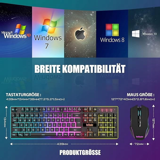 Набір бездротової ігрової клавіатури та миші RedThunder K10 QWERTZ DE