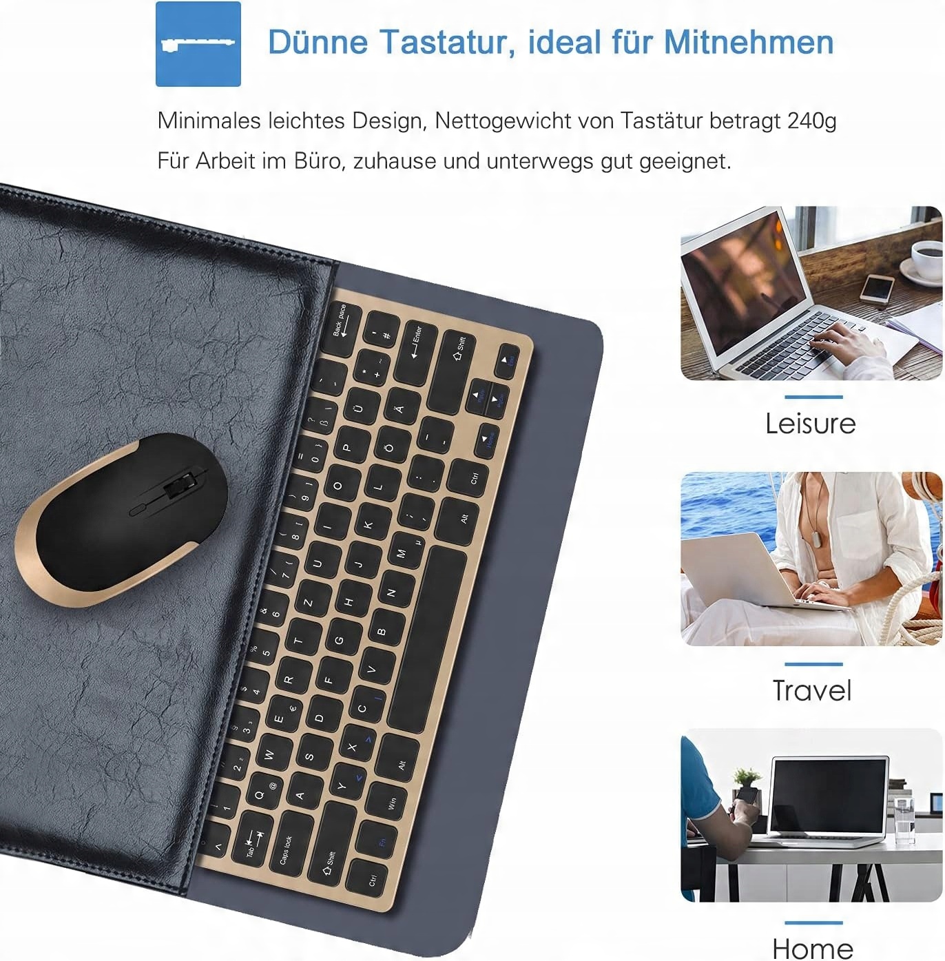 Сверхтонкая и компактная клавиатура. Беспроводная клавиатура и мышь изготовлены из высококачественного АБС-пластика. Эта небольшая клавиатура толщиной 0,4 см и весом 240 г является тонкой, элегантной и портативной. Идеально подходит для использования дома, в офисе и во время путешествий