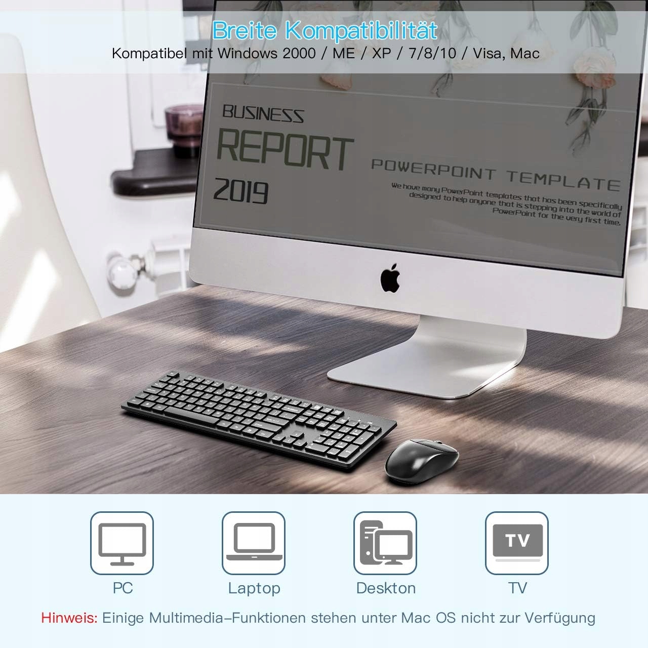 Набор беспроводной мыши и клавиатуры WisFox для компьютера, ноутбука, Nano USB 2,4 ГГц, QWERTZ — немецкий (черный)