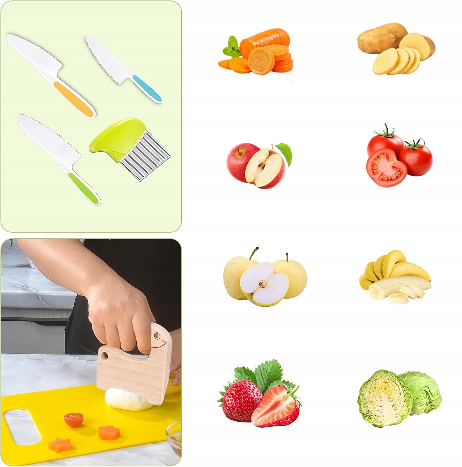 ✅ b> Нож для маленьких детей может разрезать хлеб, масло, помидоры, кабачки, салат, клубнику, яблоки, бананы и другие овощи.