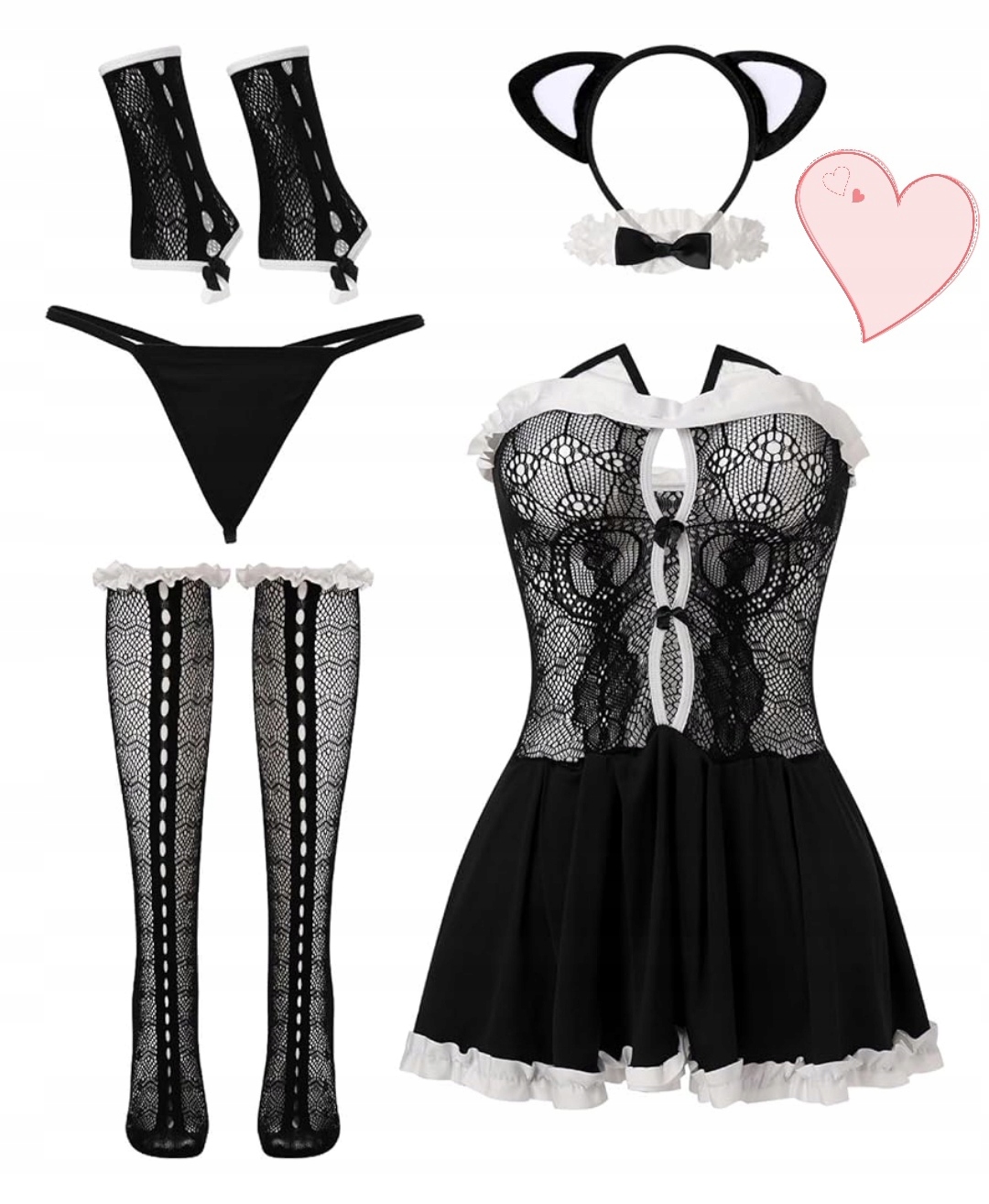 Комплект нижнего белья Kotka 6 частей M/38 наряд для кошки сексуальная Kocica Maid 24hpl