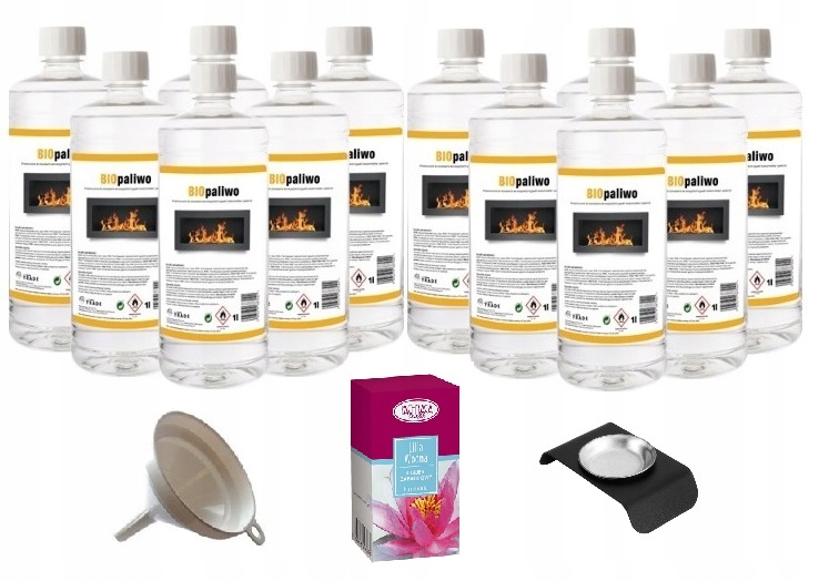 ТОПЛИВО ДЛЯ БИОКАМИНА 12 БУТЫЛОК по 1 литру + контейнер для ароматерапии + масло кувшинки + воронка