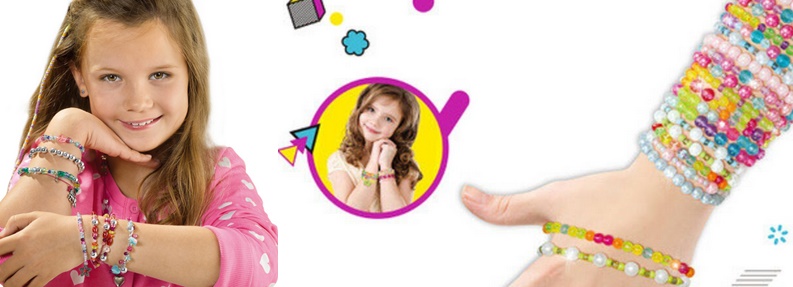 В набор входит мелкий стеклянный бисер диаметром 2 мм, круглые буквы, ножницы, звенья и застежки, а также модные декоративные бусины.