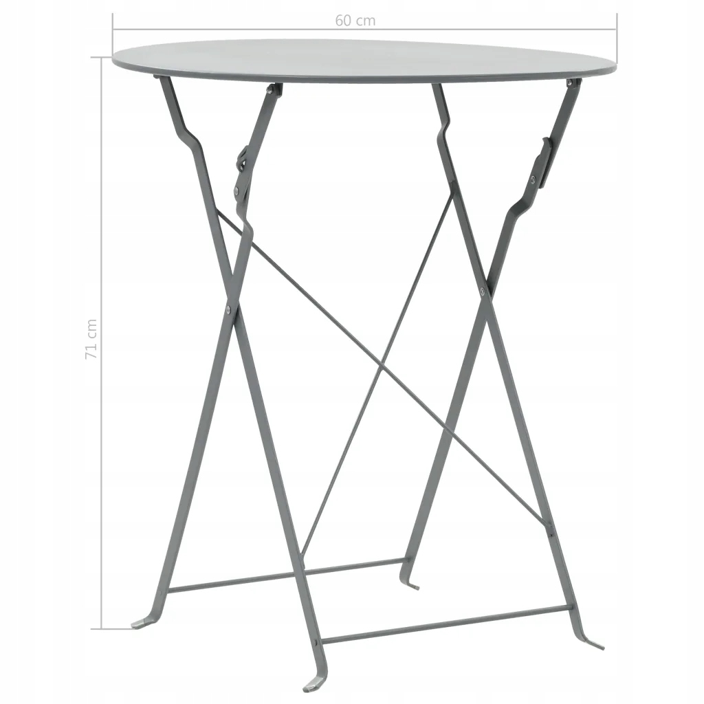 Складной набор для бистро серого цвета, 3 предмета, стол 60х71 см, стулья 42х40х81 см