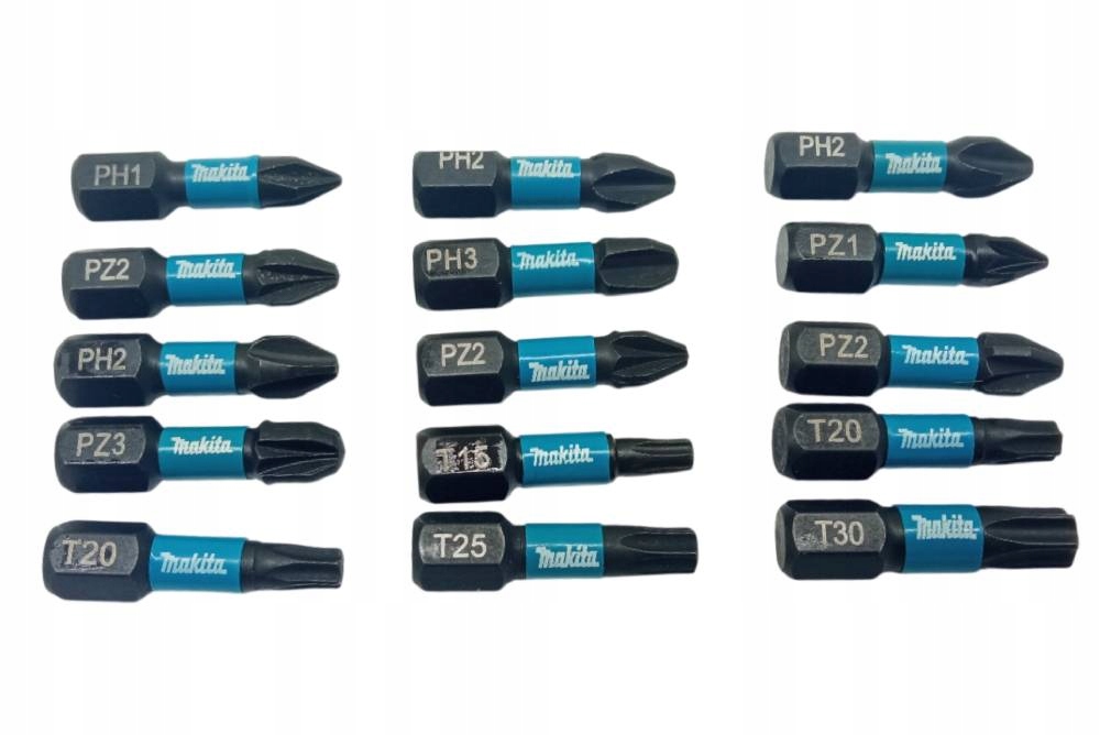 - биты 25 мм: 1xPH1, 3xPH2, 1xPH3, 1xPZ1, 3xPZ2, 1xPZ3, 1xT15, 2xT20, 1xT25, 1xT30