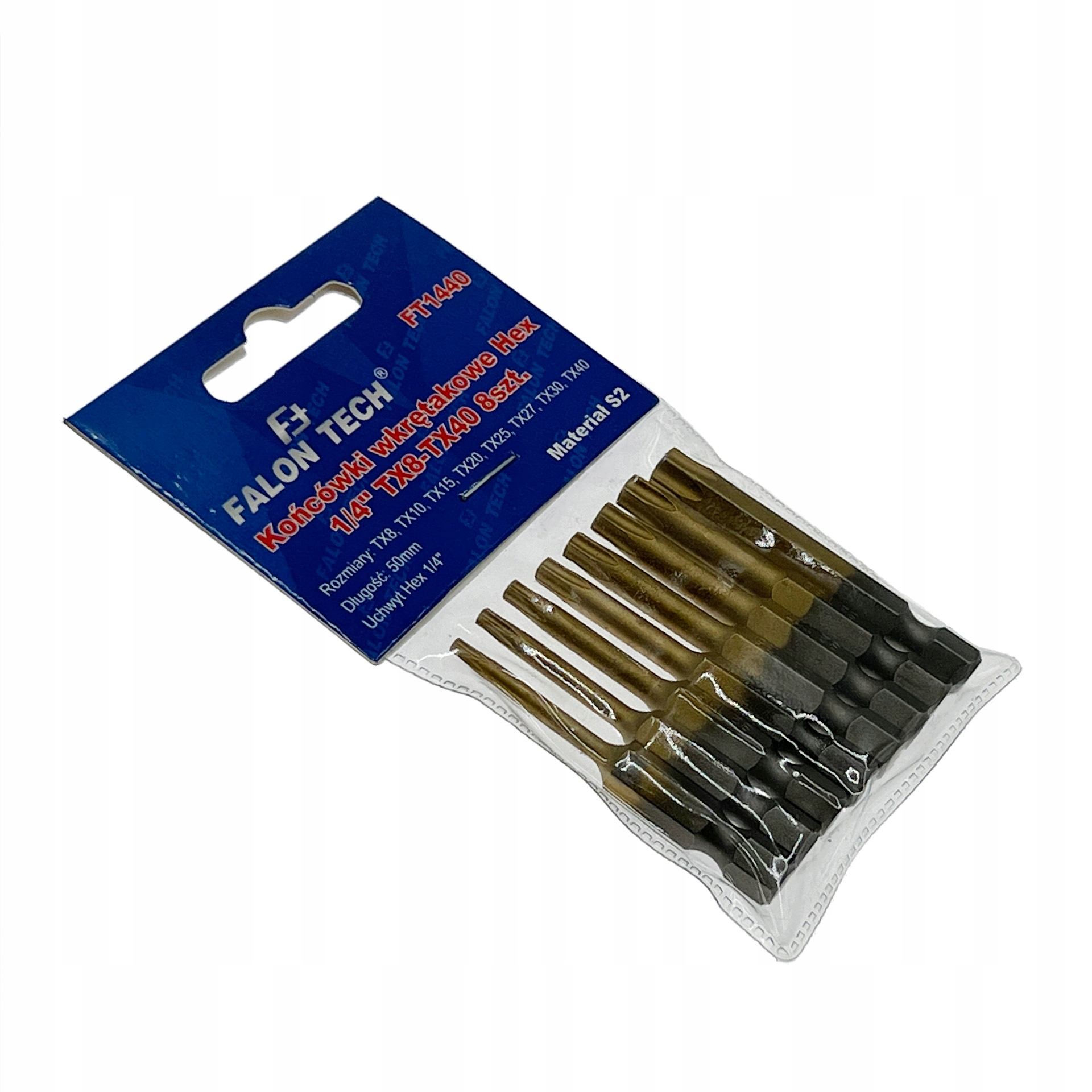 НАКОНЕЧНИКИ ОТВЕРТКИ ШЕСТИГРАННЫЕ 1/4" TX8-TX40 8 ШТ. FT1440