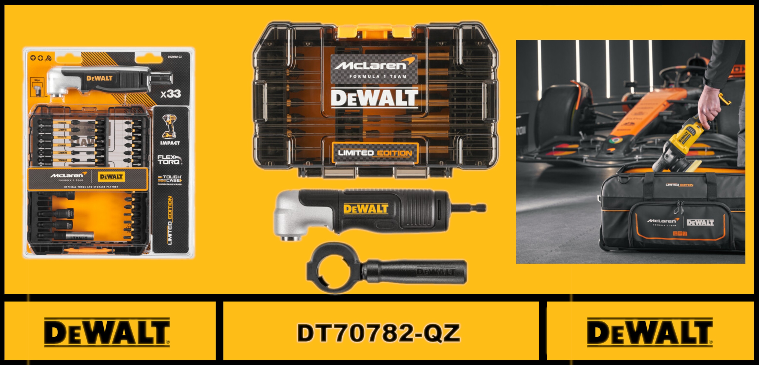 - Этот набор гарантирует точность и силу в различных приложениях, и этот набор также является ограниченным выпуском, созданным DeWalt и McLaren.