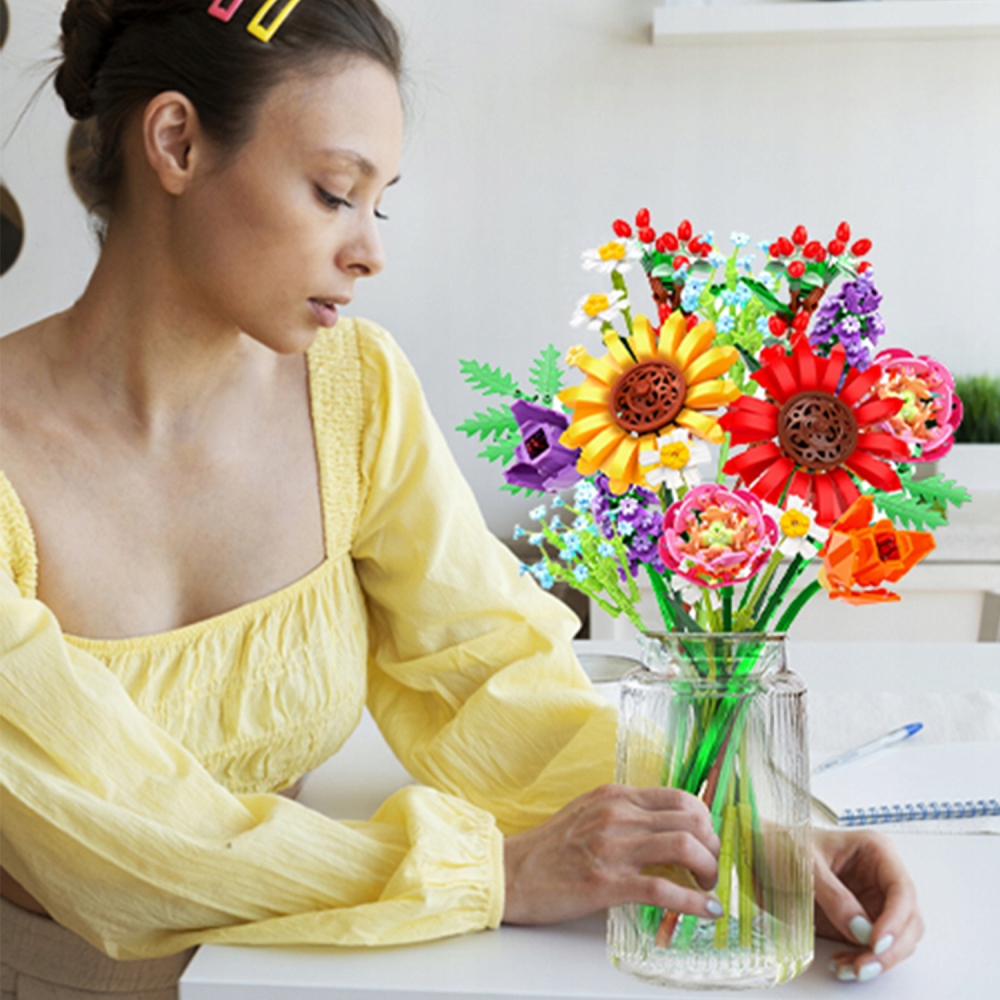 🧩🎨 lyed и совместимый - Букет цветов регулируется и может быть разработан в соответствии с вашими предпочтениями. Он также совместим с другими цветами для создания уникальной связи.