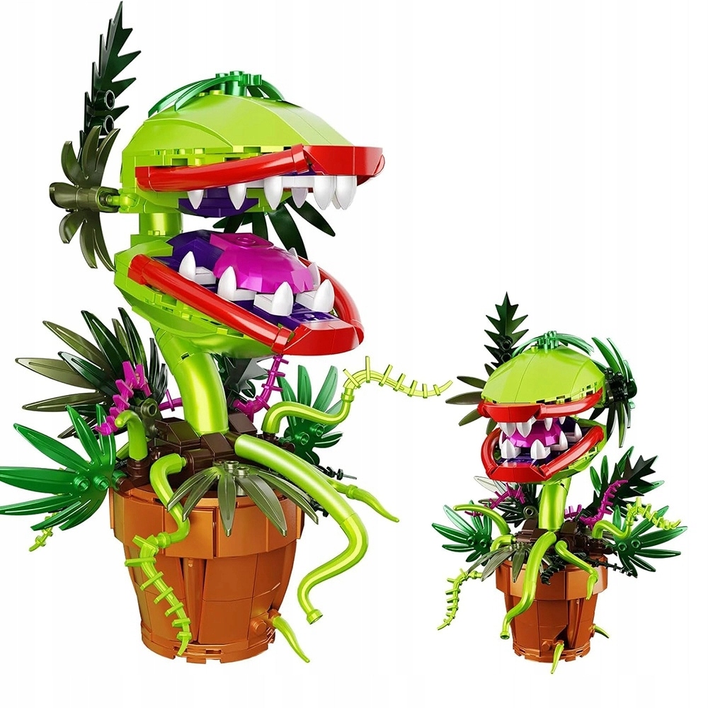 Вы поклонник фильмов ужасов или необычных украшений? Этот уникальный набор кубиков позволит вам построить собственного растительного монстра — Одри II, известную по культовым фильмам! У модели открывающийся рот, полный острых зубов и... высунутый язык! 🦷👅