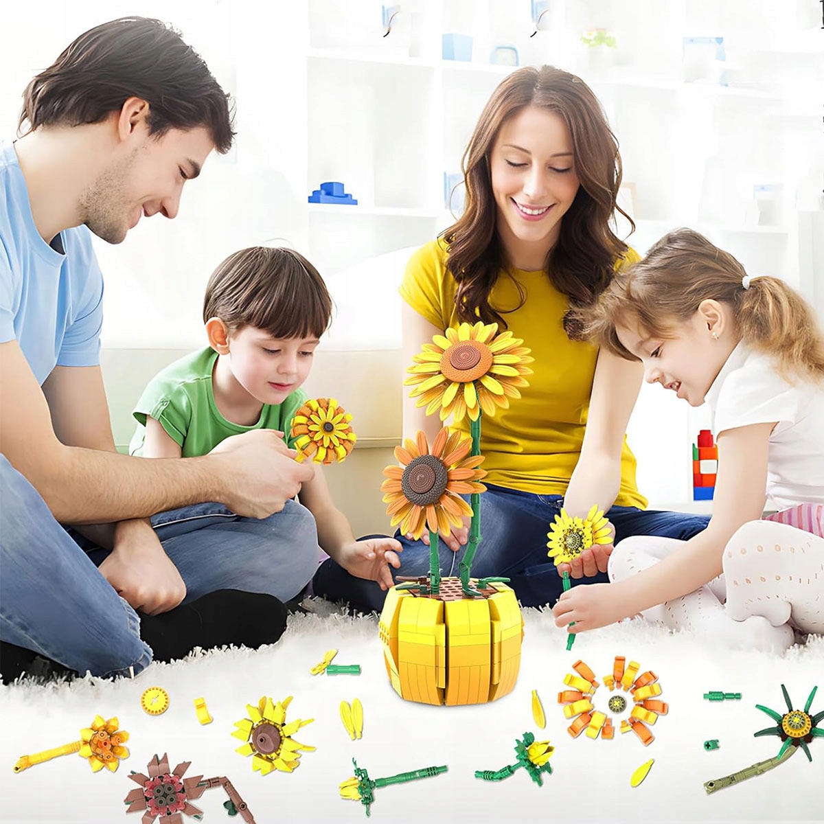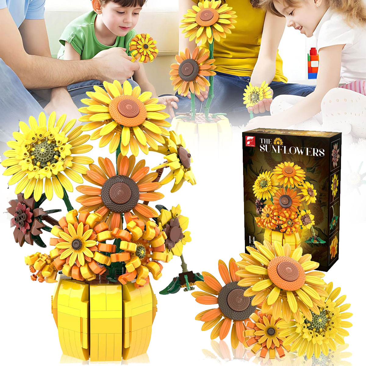 Элегантная упаковка Этот набор кубиков с букетом цветов включает понятную инструкцию и элегантную упаковку - прекрасный подарок ко Дню матери, дню рождения или юбилею. Эти энергичные, не увядающие подсолнухи привнесут свежесть в любое помещение.