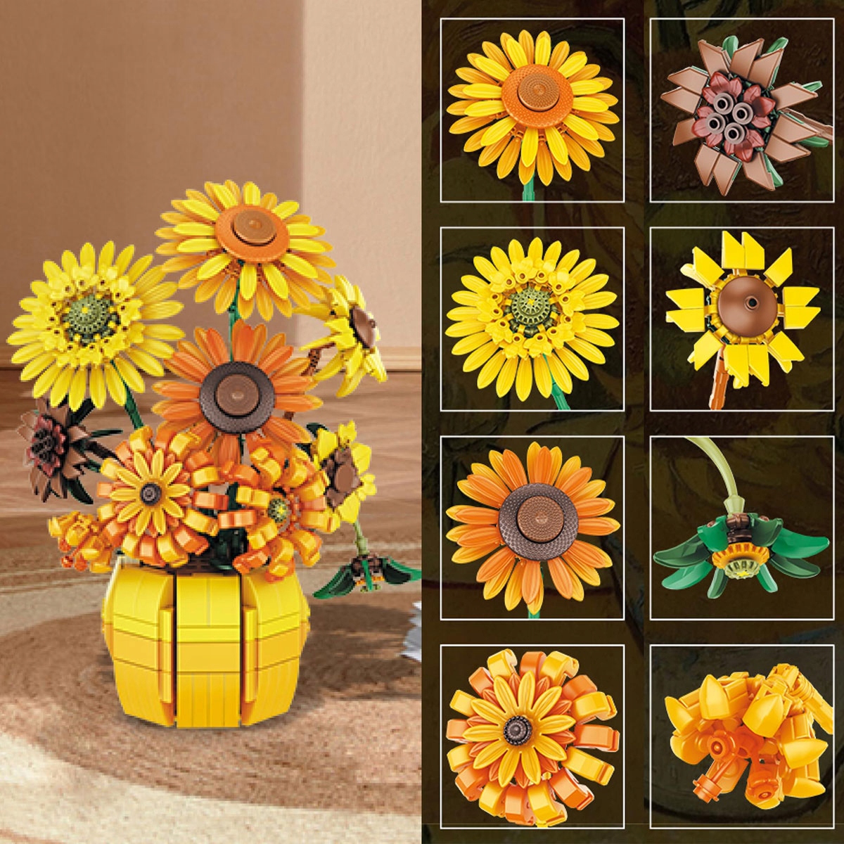 1x набор кубиков для сборки букета подсолнухов (с вазой)