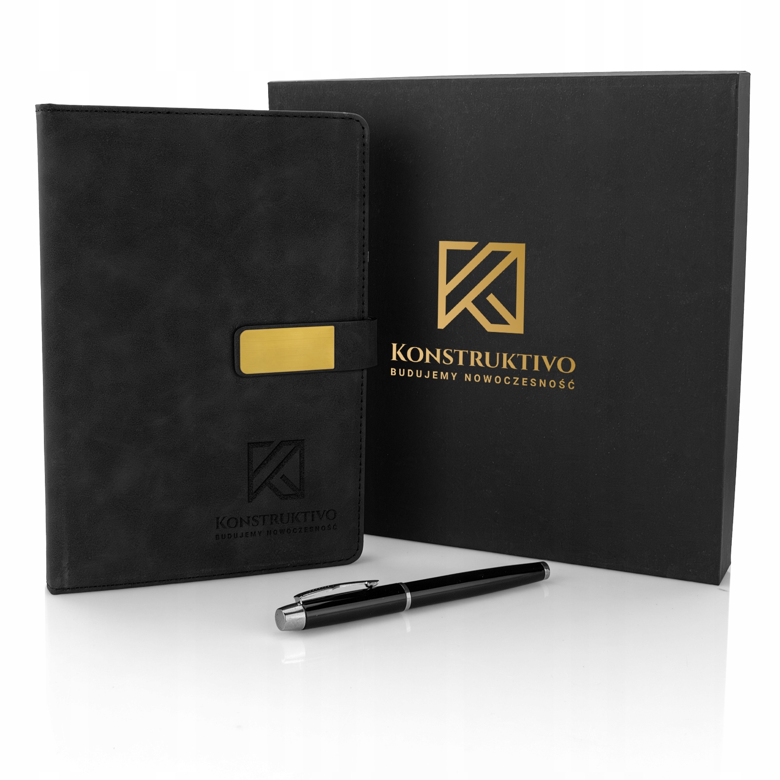 - Элегантность и престиж в классическом черном цвете - блокнот и ручка в приглушенных черных тонах выглядят профессионально и вне времени.