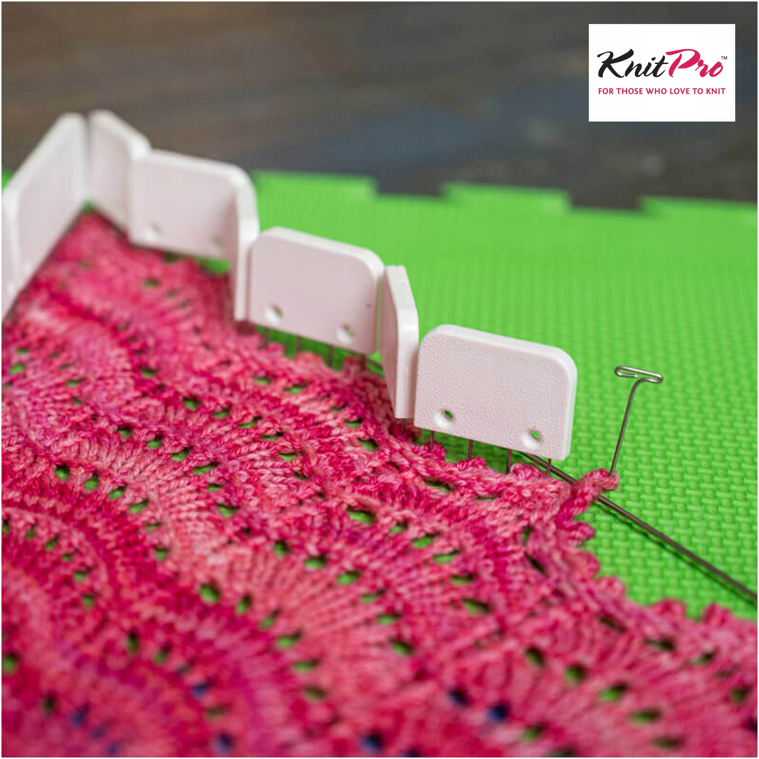 НАБОР ИГОЛ ДЛЯ БЛОКИРОВКИ трикотажных полотен, встроенных в пластиковые блоки. Облегчает блокировку трикотажных полотен больших размеров без необходимости использования булавок. После высыхания трикотажа участки блокировки не растягиваются и не видны. Комплект идеально подходит для блокировки шарфов.