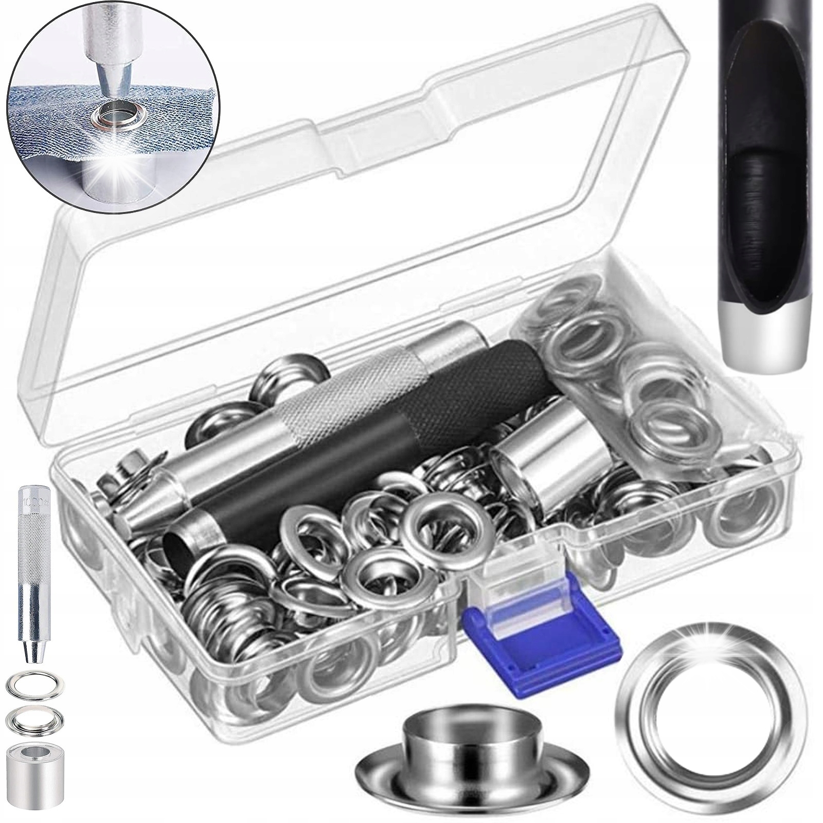 НАБІР БРЕЗЕНТОВИХ ЛЮВЕРСІВ З ЗАКОВКОЮ ВІЧКА ПЕРФОРАТОР 10ММ НАПИ 100 ШТ.