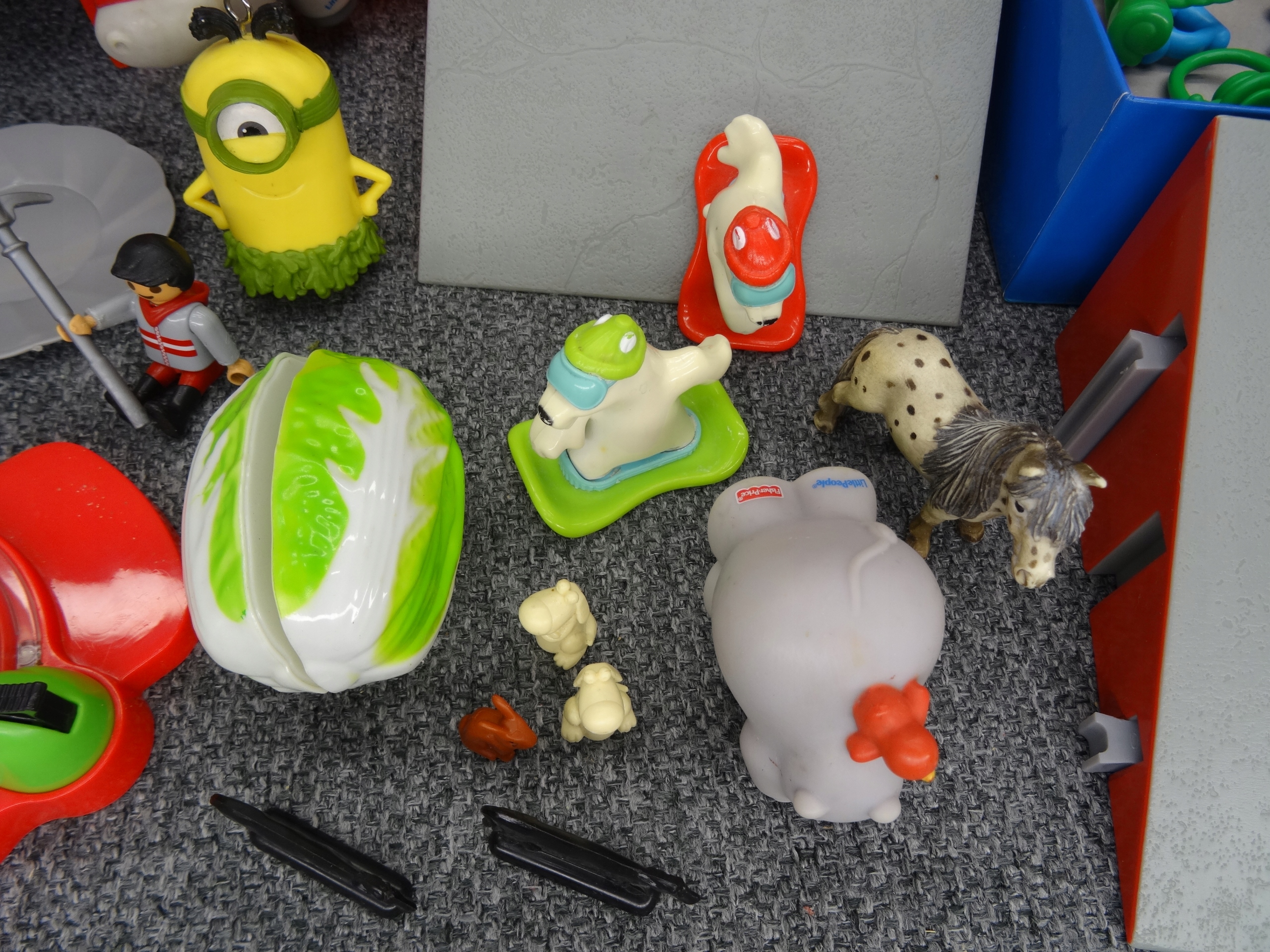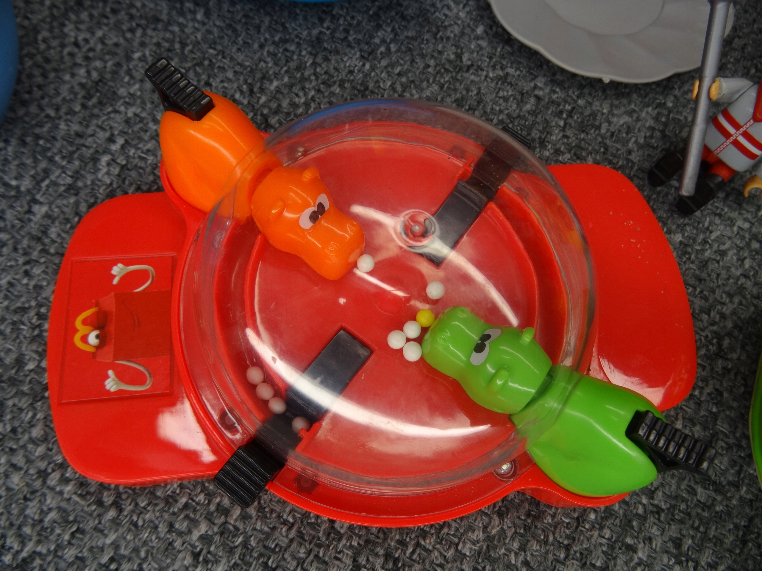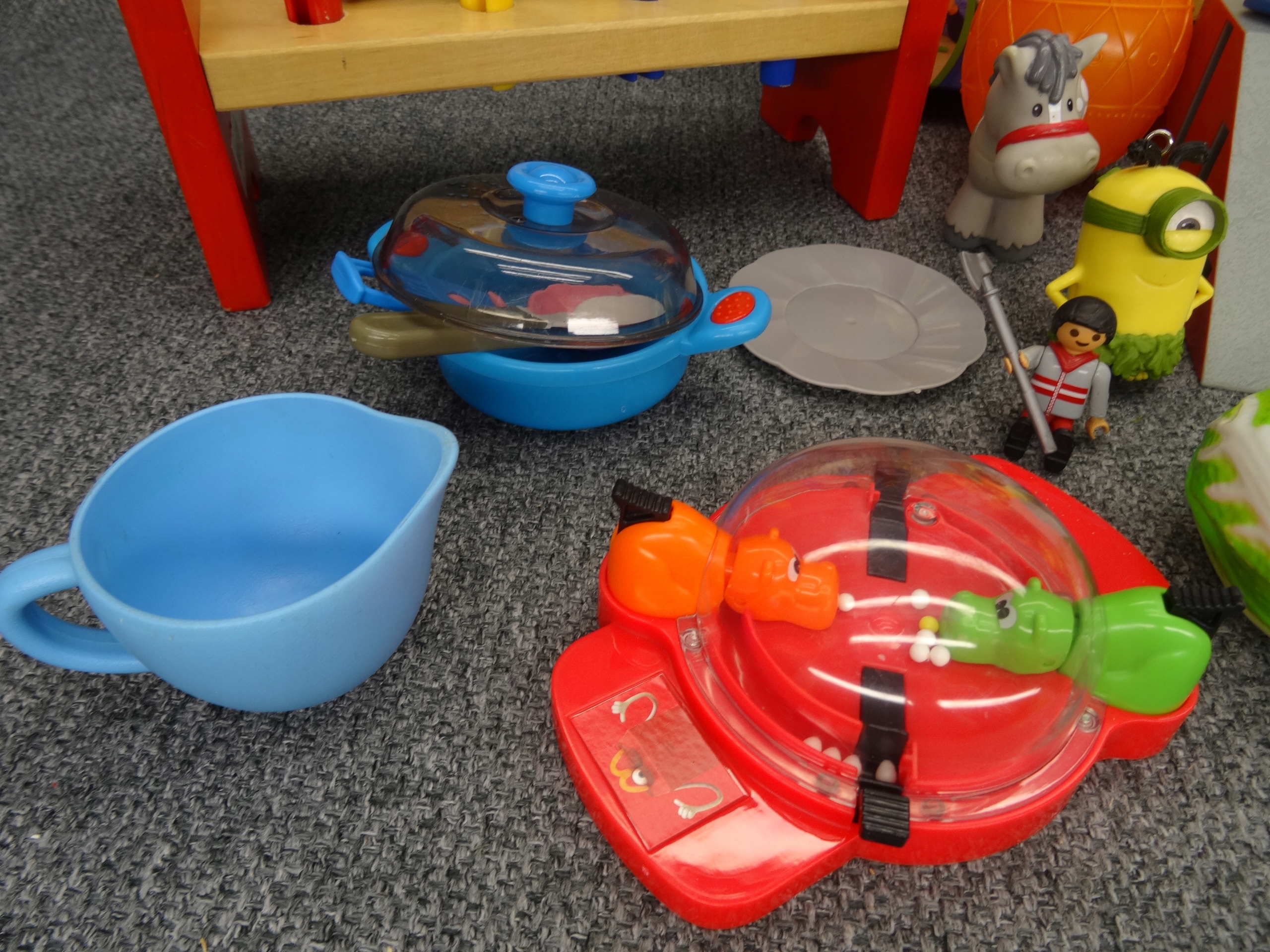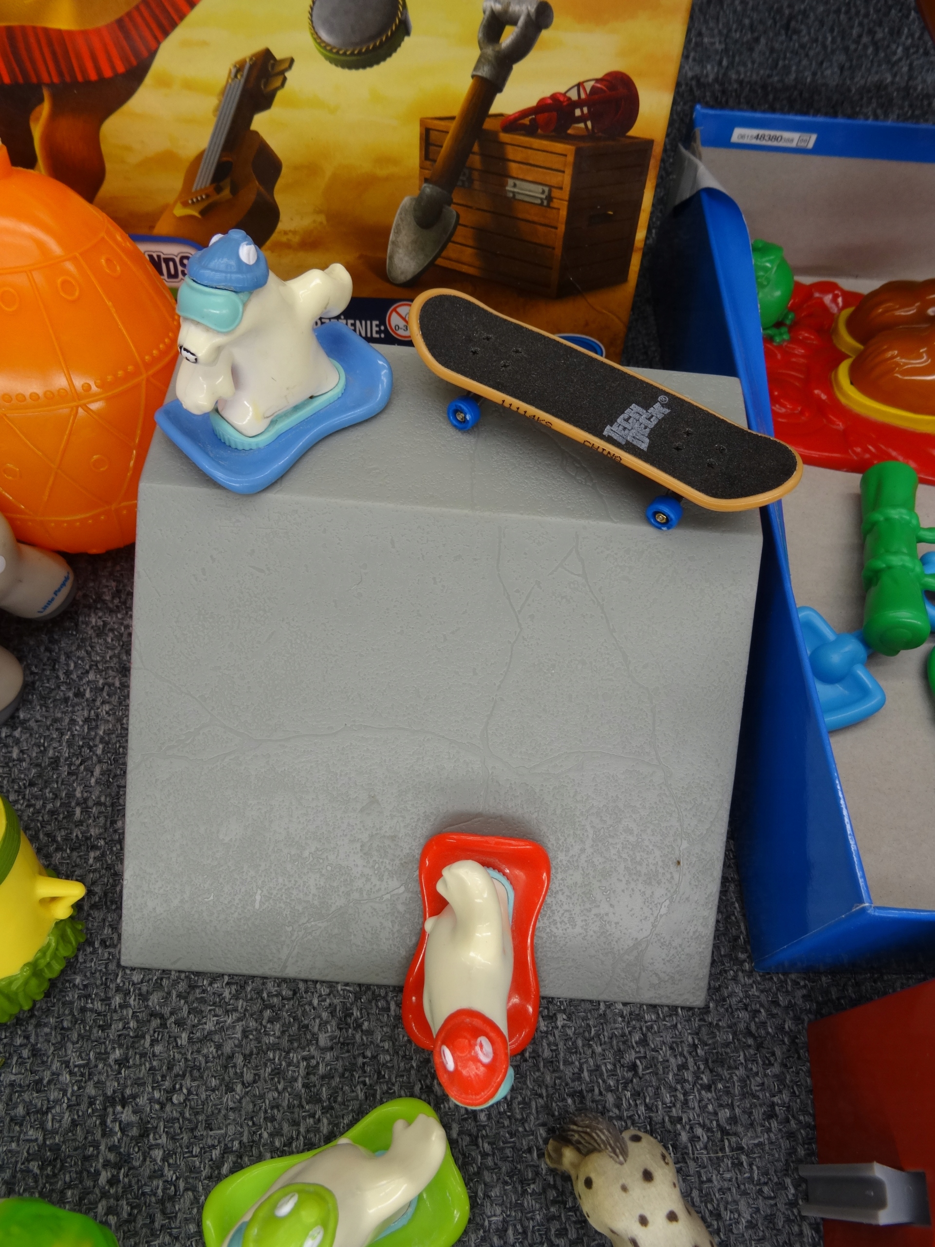 Набор различных игрушек: Бакару, фигурки, посуда, мячи, шарики, молоток и другие игрушки.