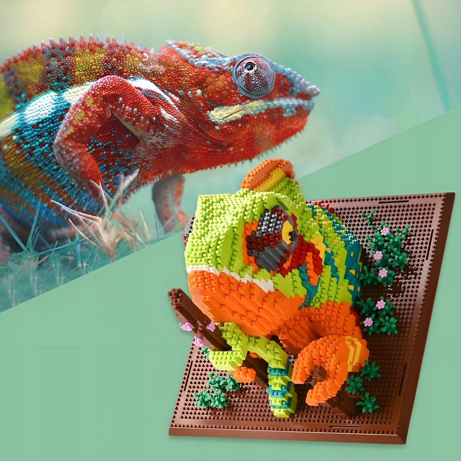 🧩 Яркий дизайн-хамелеон: Этот яркий набор строительных блоков состоит из более чем 2688 деталей, из которых можно создать захватывающую дух модель хамелеона - идеально подходит для любителей животных и любителей строительства.