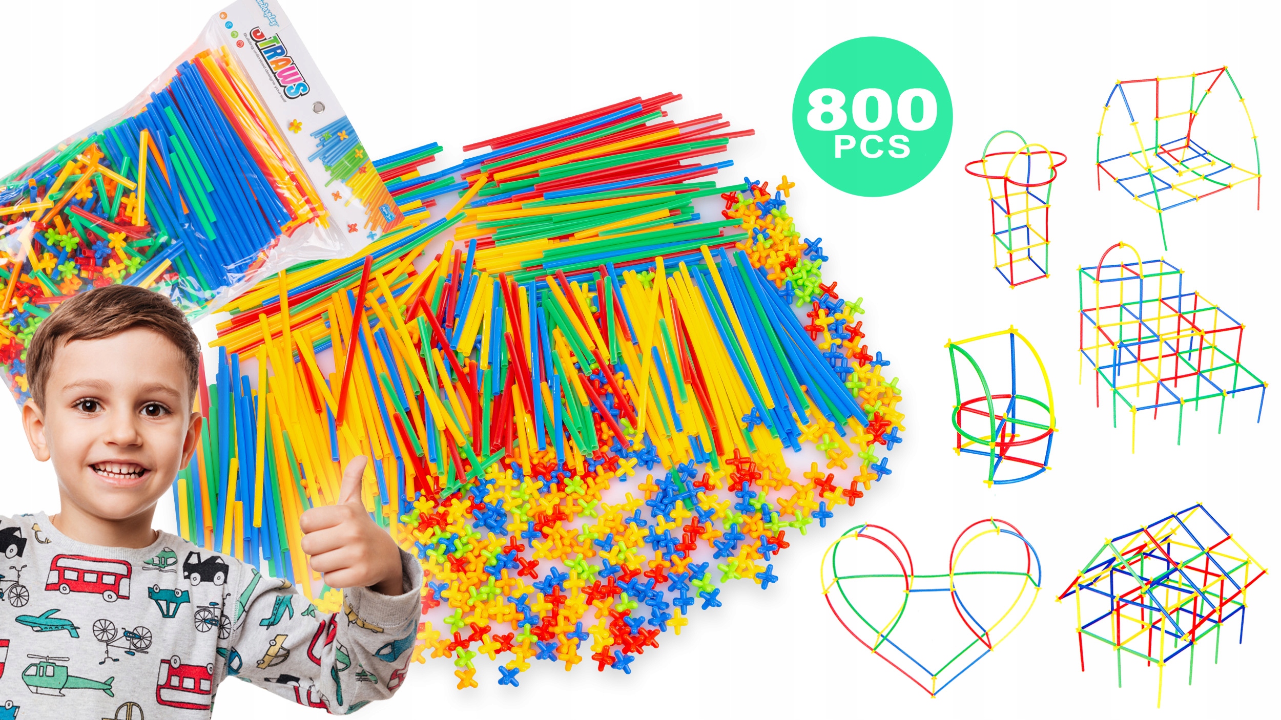СТРОИТЕЛЬНЫЕ БЛОКИ, ТРУБКИ, 3D СОЛОМОЧКИ - 800 ЭЛЕМЕНТОВ