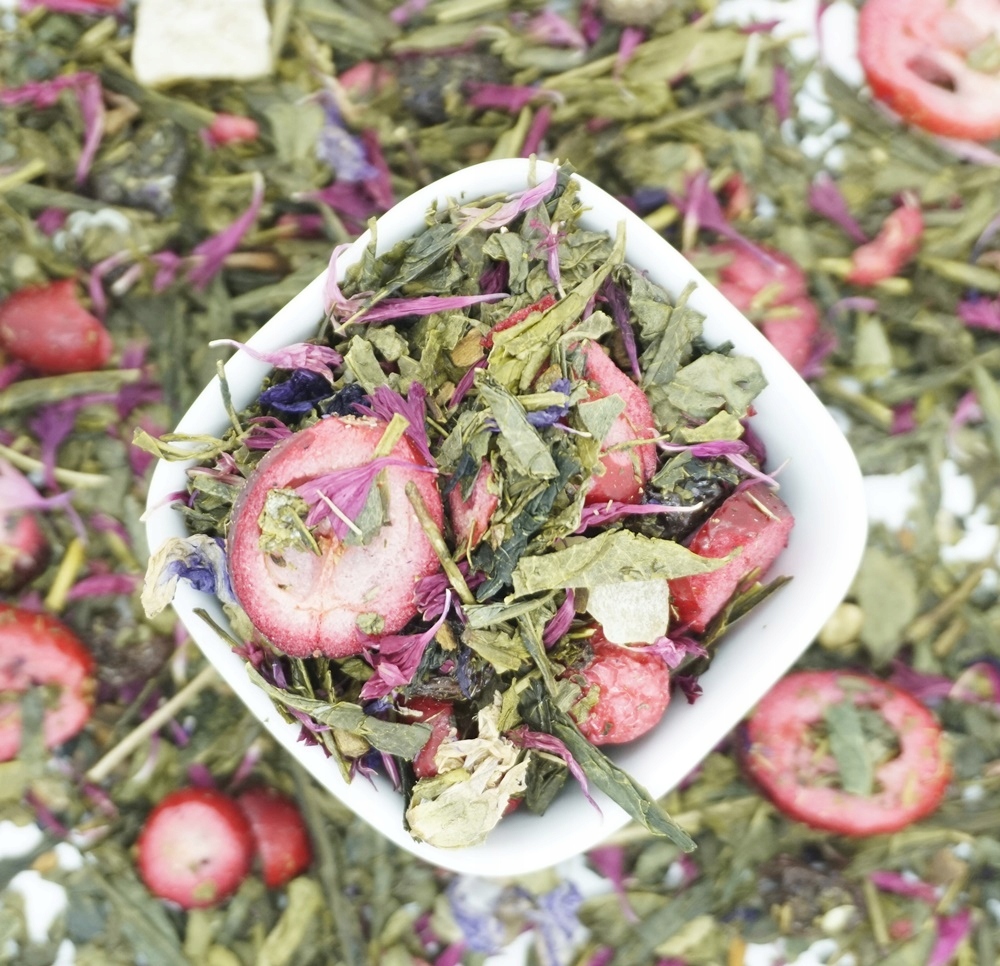 ВИФЛЕЕМСКАЯ ЗВЕЗДА 50 г – состав: зеленый чай Сенча, изюм , корица, имбирь, красная смородина, цветок мальвы, клюква, василек розовый.