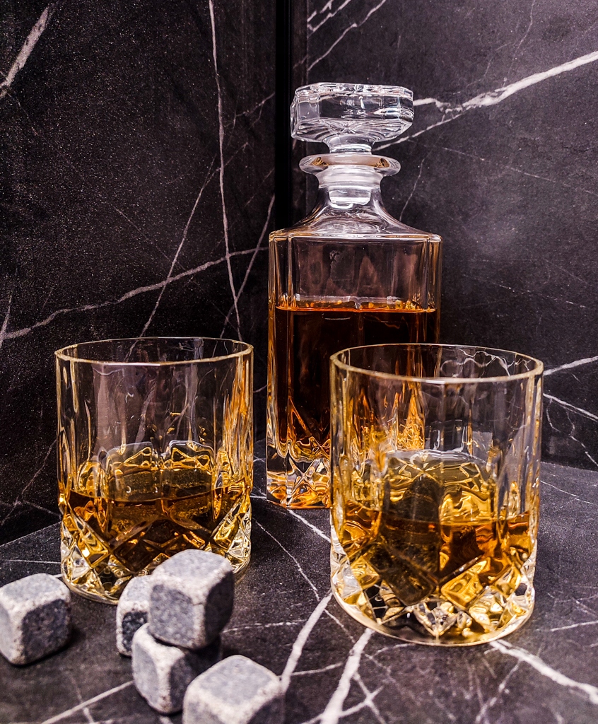 - Количество в упаковке: 3 шт. (1 хрустальный графин и 2 бокала для виски)