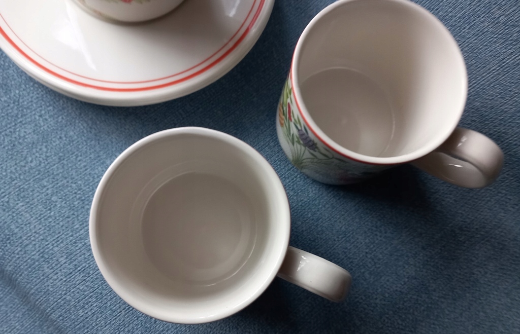 Чашки на ручках имеют загрязнения и дефекты - фото,