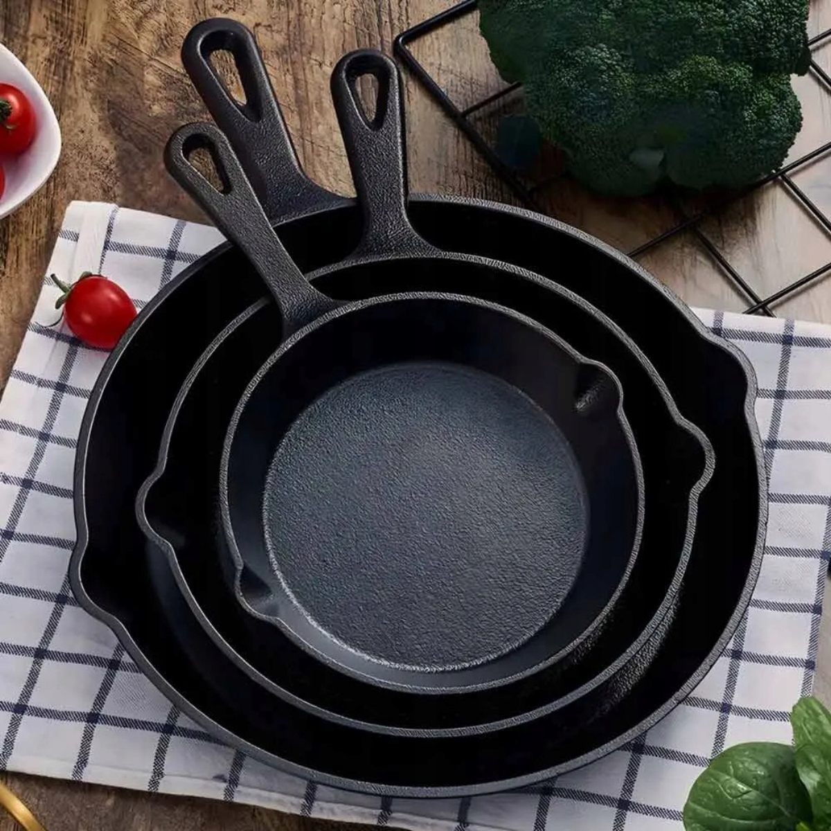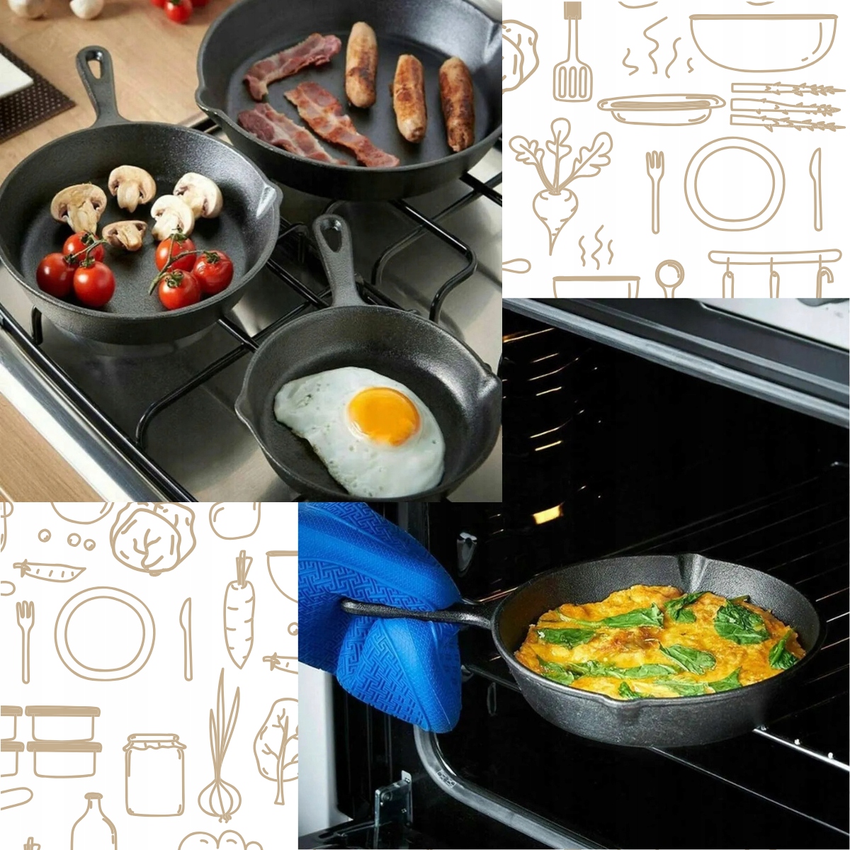 НАБОР ЧУГУННЫХ СКОВОРО, 3 ШТ. ГЛУБОКАЯ ЧУГУННАЯ СКОВОРО XXL, ГАЗОВАЯ ИНДУКЦИЯ