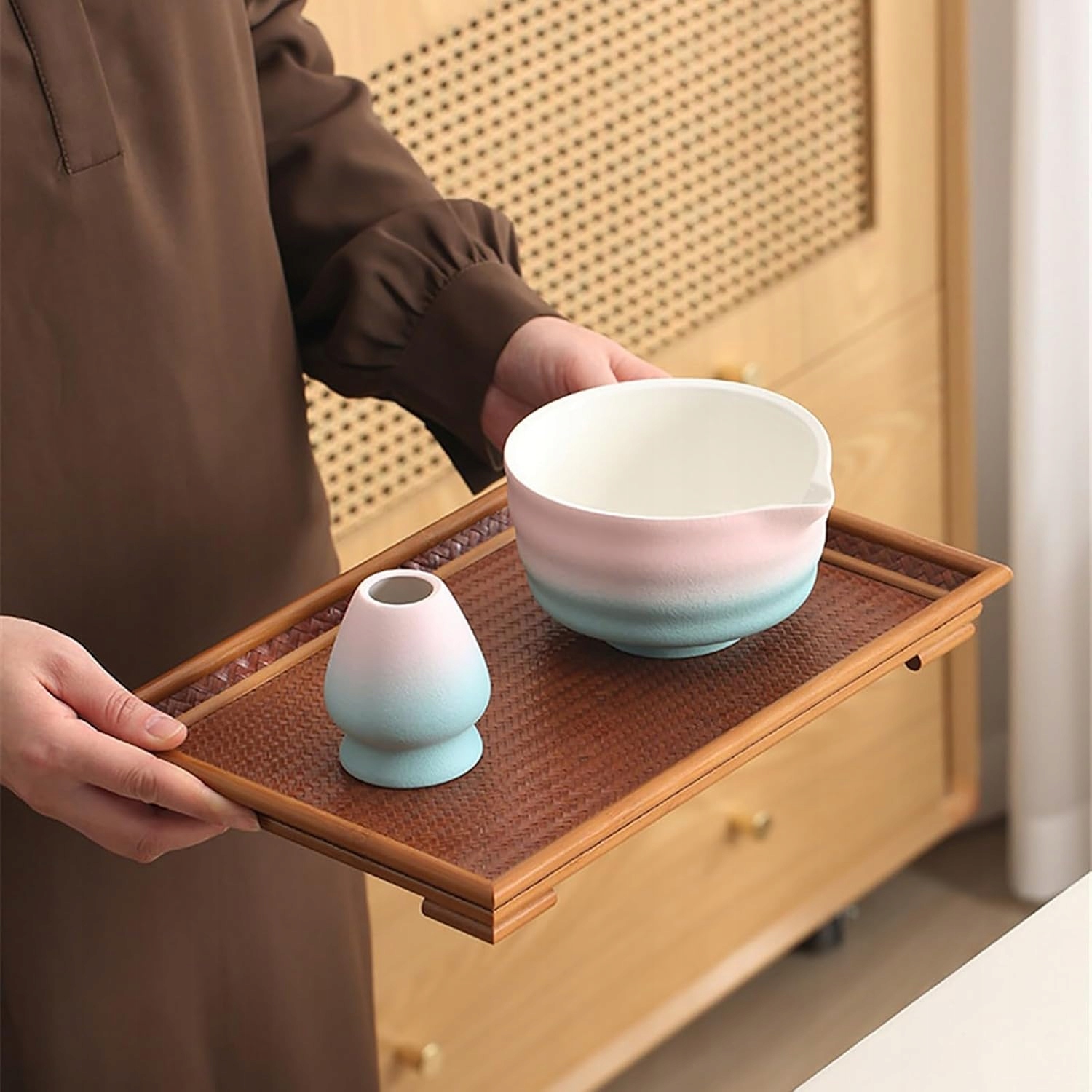 🍵 УНИКАЛЬНЫЙ ДИЗАЙН ЧАШКИ ДЛЯ МАТЧИ: Специальный дизайн с горлышком для литья, позволяющим легко делиться матчем с друзьями и семьей. Чаши для матча и подставка для венчика одного цвета, более высокая церемониальность.