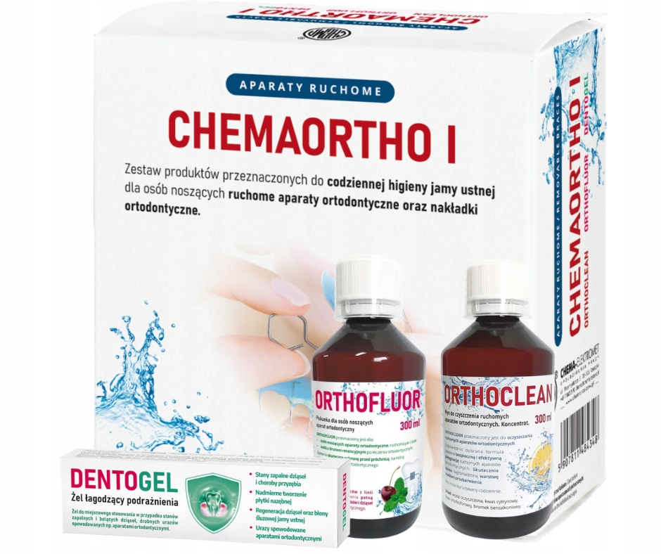 CHEMAORTHO I — набор средств, предназначенных для ежедневной гигиены полости рта у людей, носящих съемные ортодонтические аппараты и ортодонтические накладки. В набор входят: