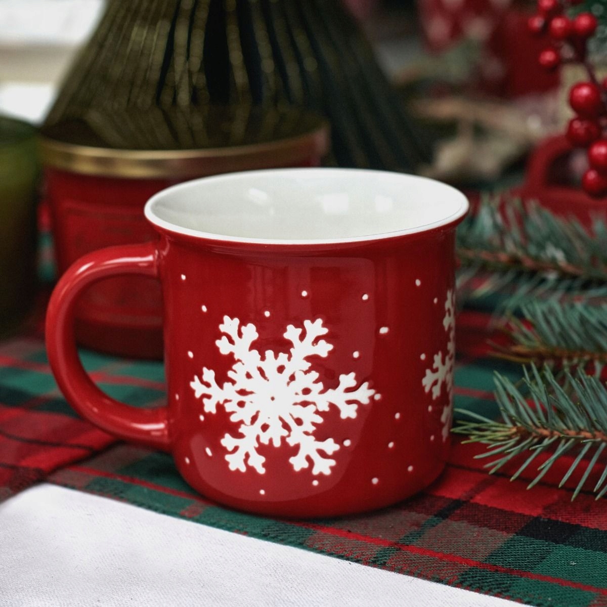 ⭐ Набор красных кружек TRINKIE со снежинкой, 2 шт, 0,36 л ХОМЛА ⭐