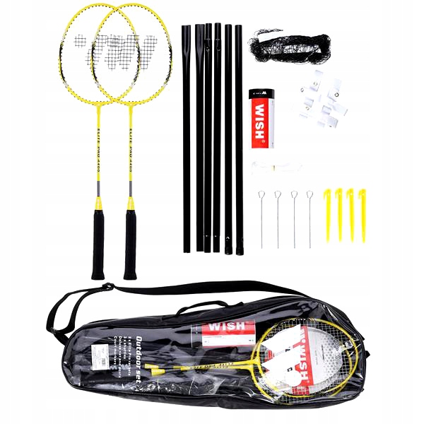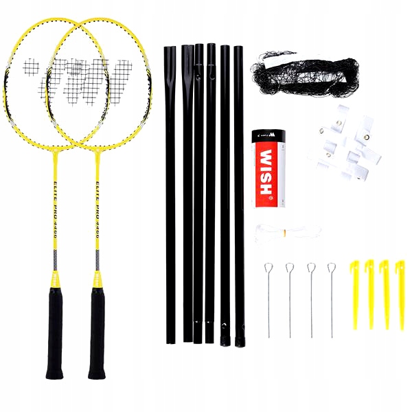 НАБОР РАКЕТОК ДЛЯ БАДМИНТОНА ALUMTEC 4466 ЖЕЛТЫЙ 2 ШТ. + СТАВНИ 3 ШТ. + СЕТКА + ЛИНИИ ЖЕЛАНИЙ