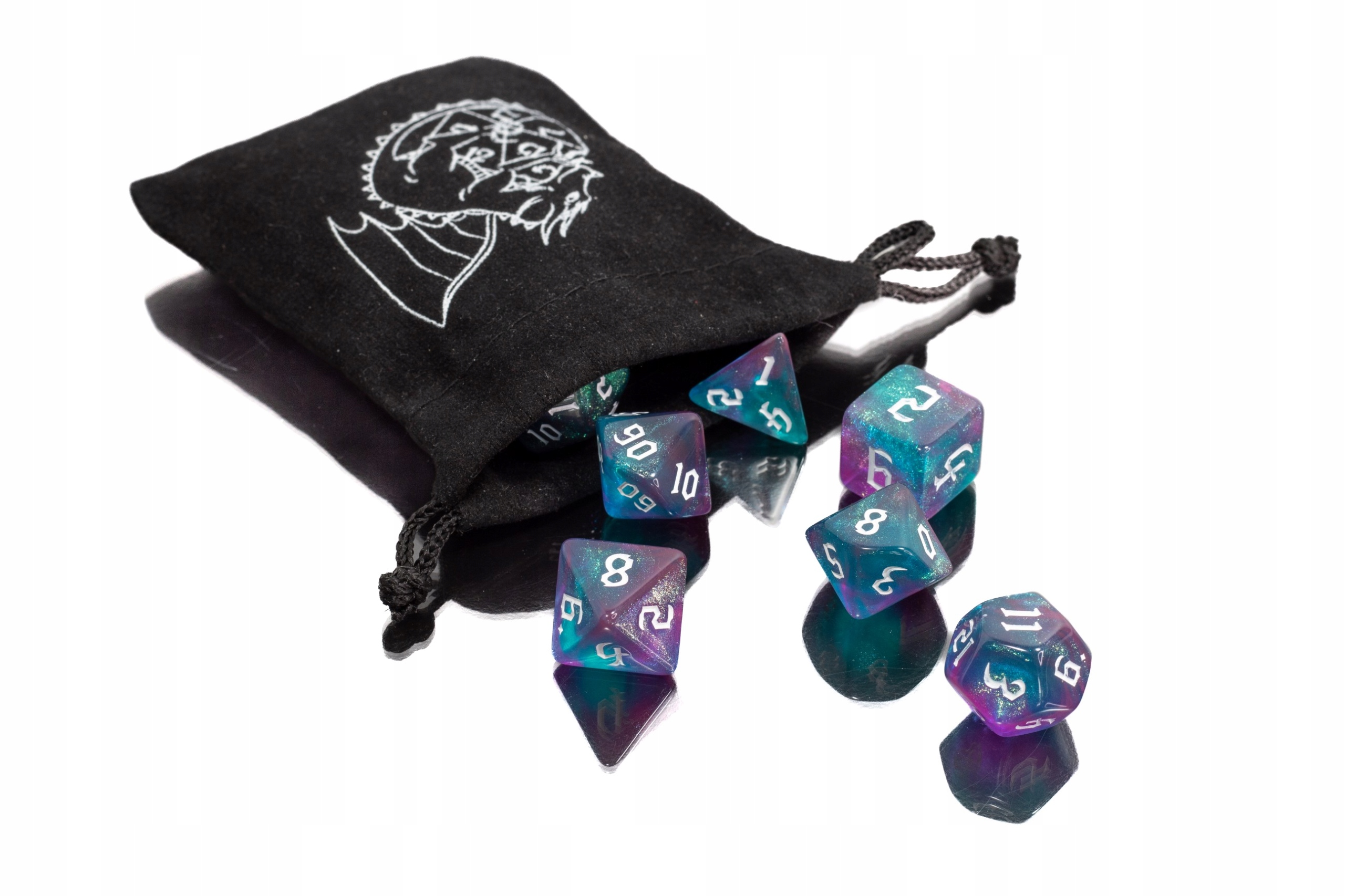 Набор игральных костей, то есть семь высококачественных игральных костей. Благодаря соответствующему балансу ими очень удобно пользоваться.