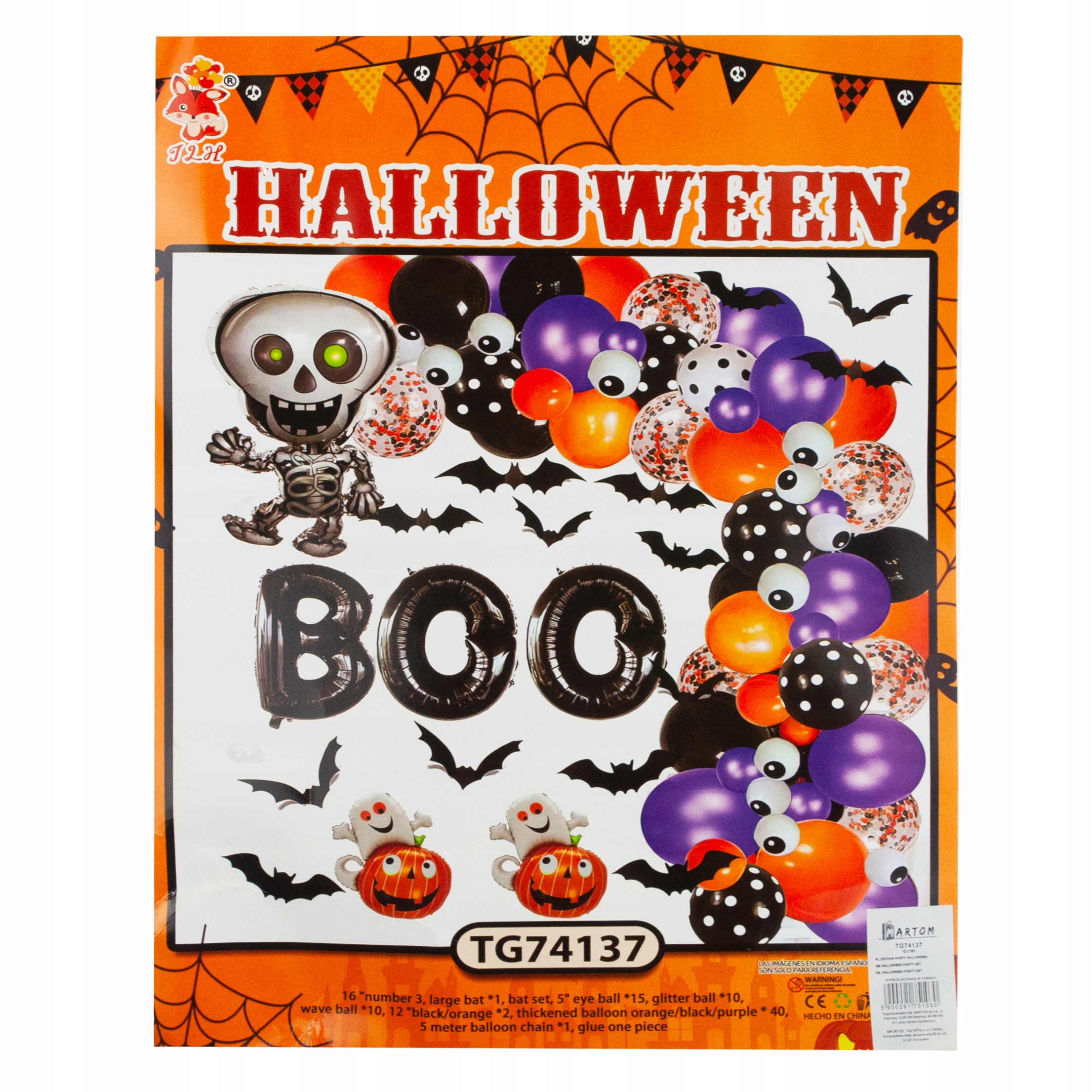 НАБІР ДЕКОРАЦІЙ НА ХЕЛОВІН ГІРЛЯНДА ПОВІТРЯНІ КУЛЬКИ З ЛАТЕКСНОЇ ФОЛЬГИ ЛАТЕКС Kościotr