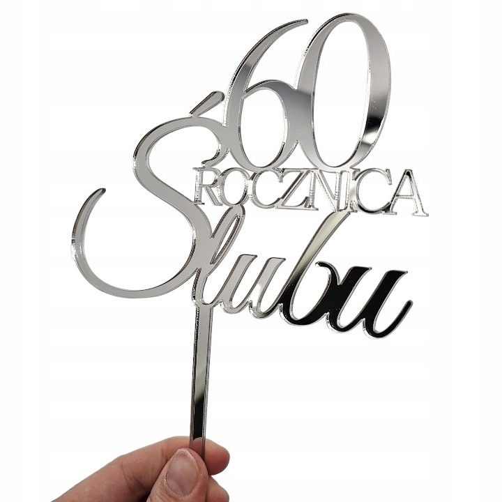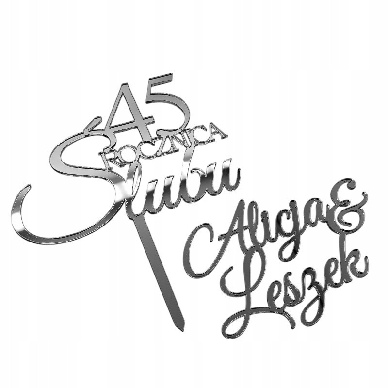 Zestaw dekoracji na tort topper Rocznica z imionami IMIONA srebrne lustro