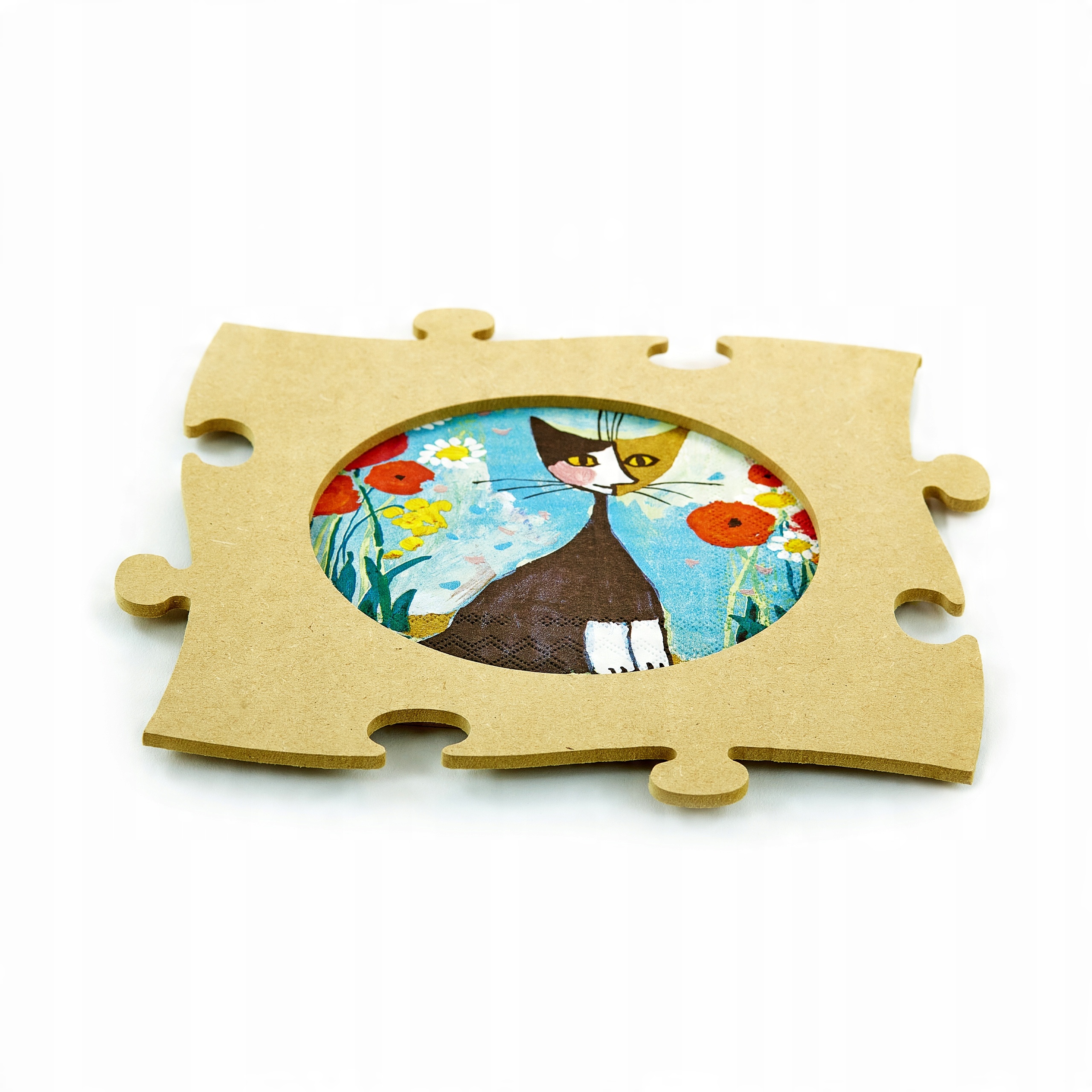 - фоторамка в виде пазла, изготовленная из плиты МДФ, размер 24 х 24 см, круглый вырез диаметром 14 см
