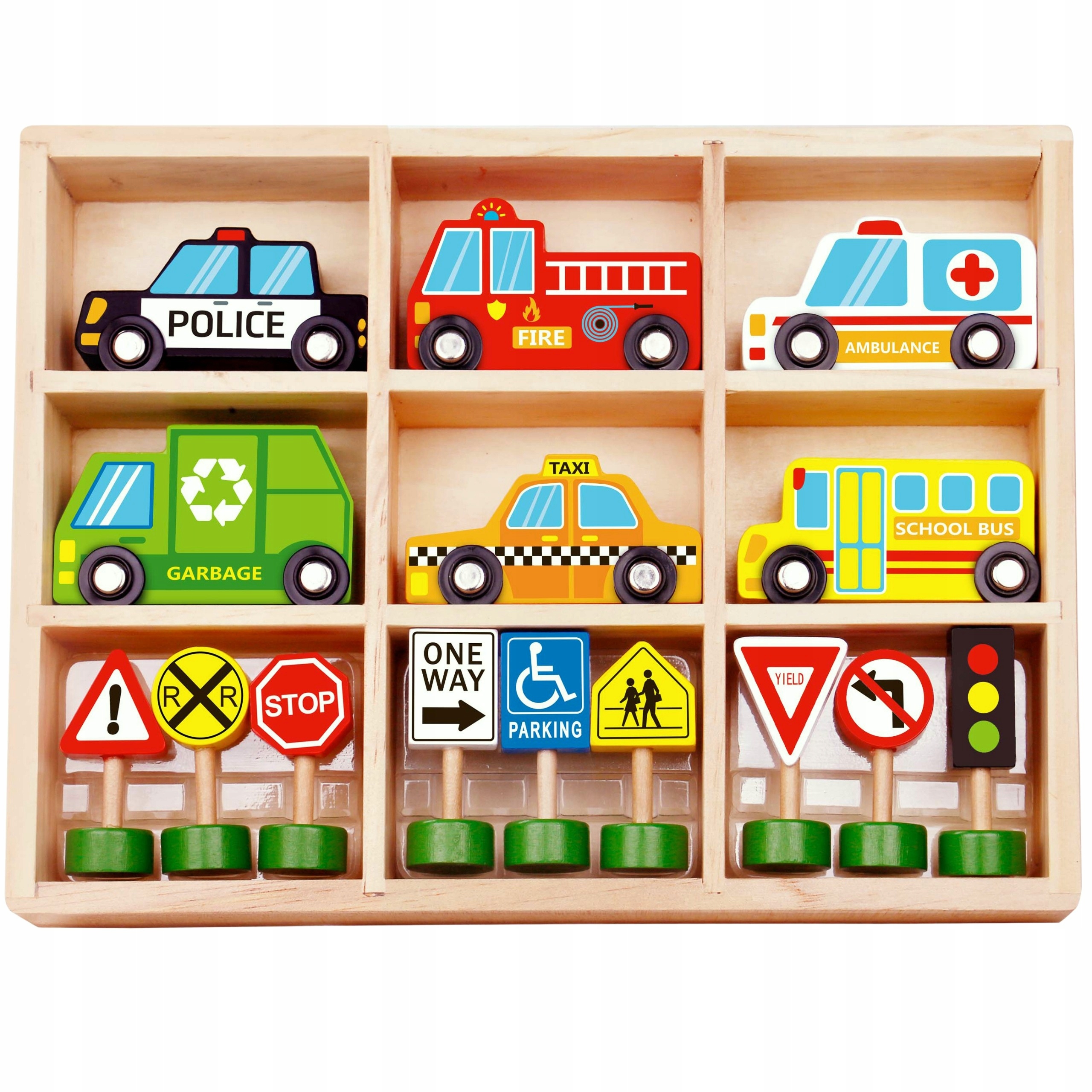 деревянный набор из woopie green - отличный образовательный инструмент, который с помощью игры знакомит ребенка в мир правил движения. включали 6 красочных транспортных средств и 9 дорожных знаков, которые помогают малышу изучить основные правила безопасности на дороге. Целое сделано из прочного дерева и безопасных, не -токсичных красок