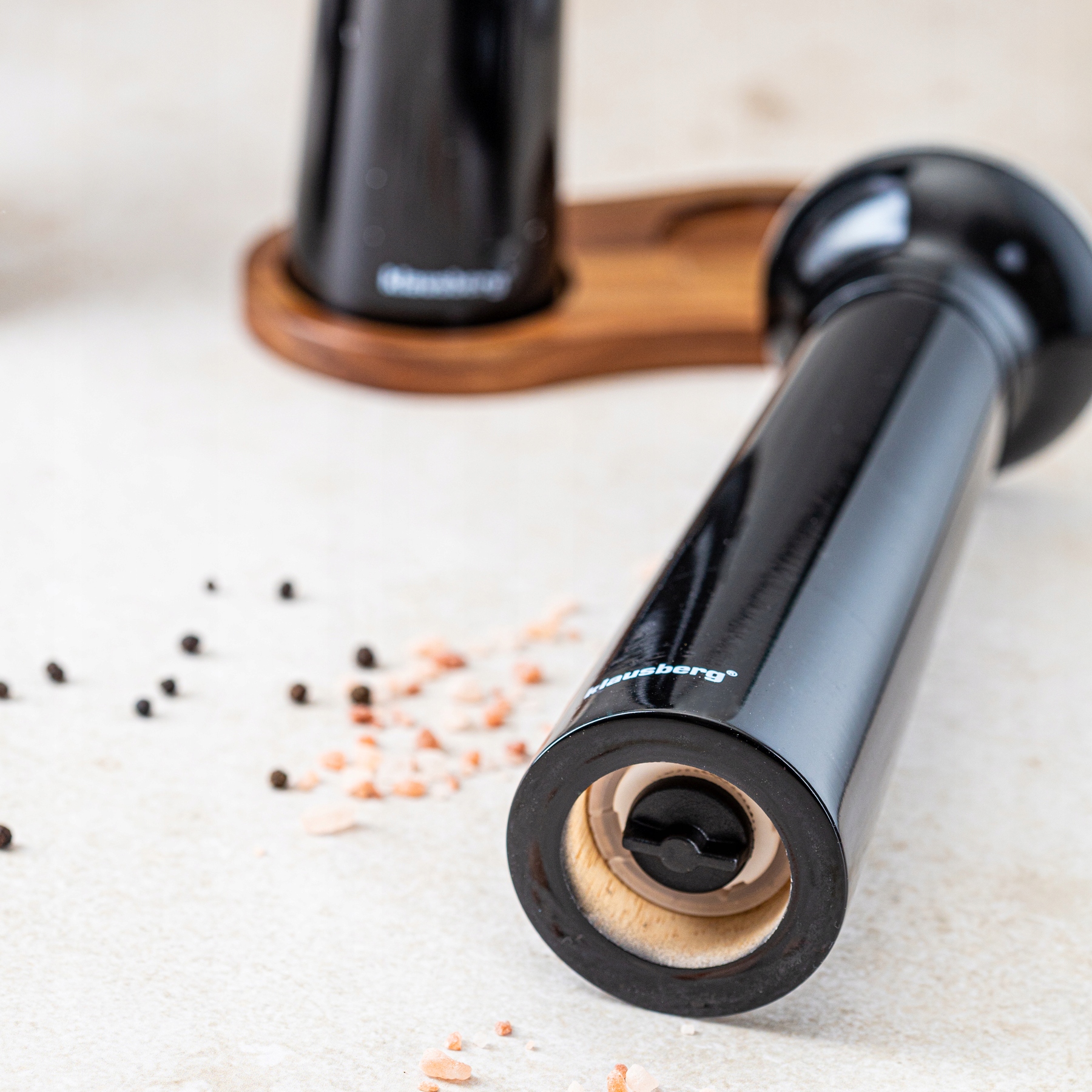 ✅ Набор мельниц для перца и соли из каучукового дерева, покрытого черным лаком. p>