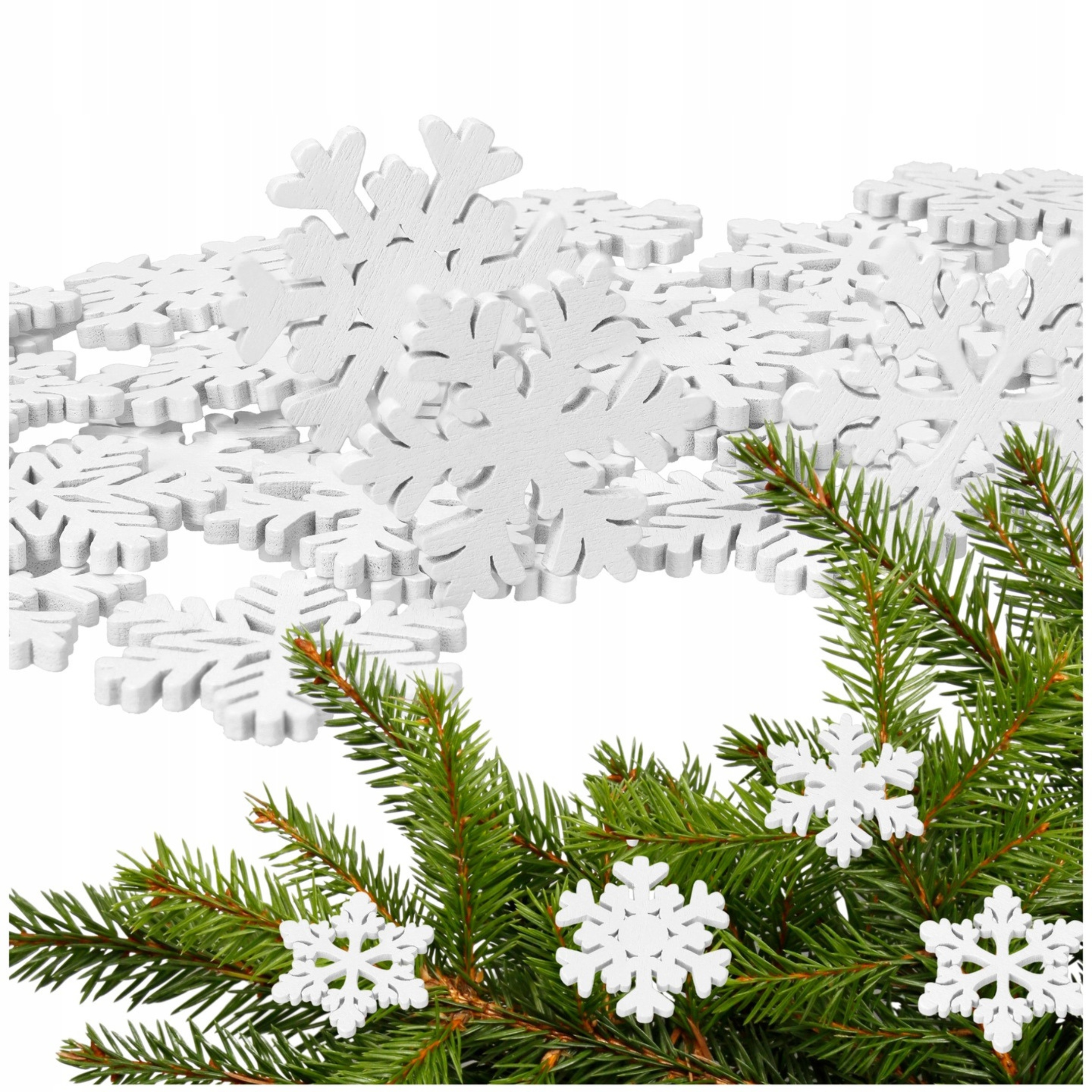 НАБОР ДЕРЕВЯННЫХ СНЕЖИНОК, УКРАШЕНИЯ ДЛЯ ЕЛКИ - 3,5 СМ, 52 ШТ