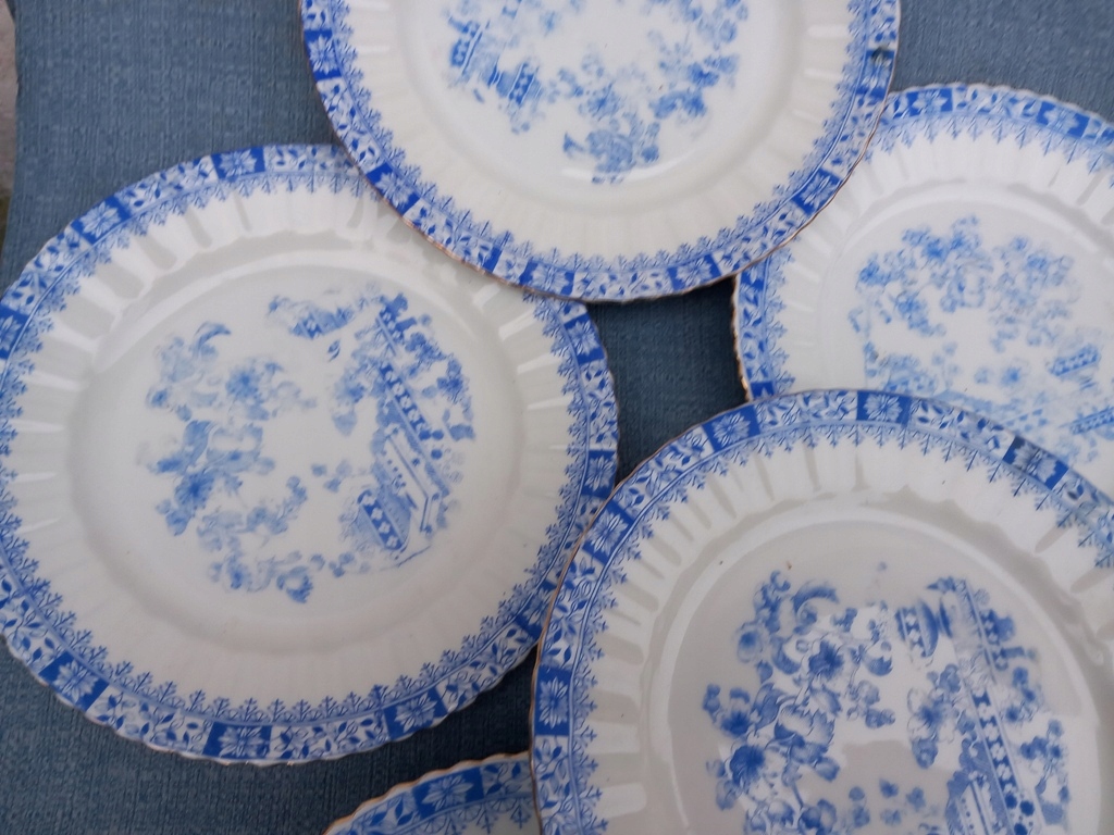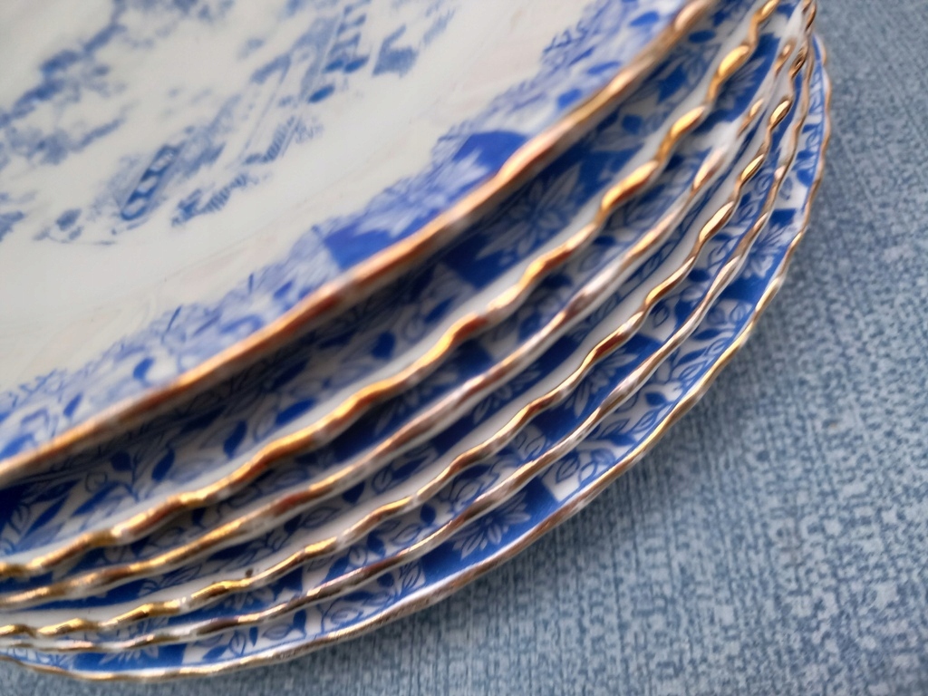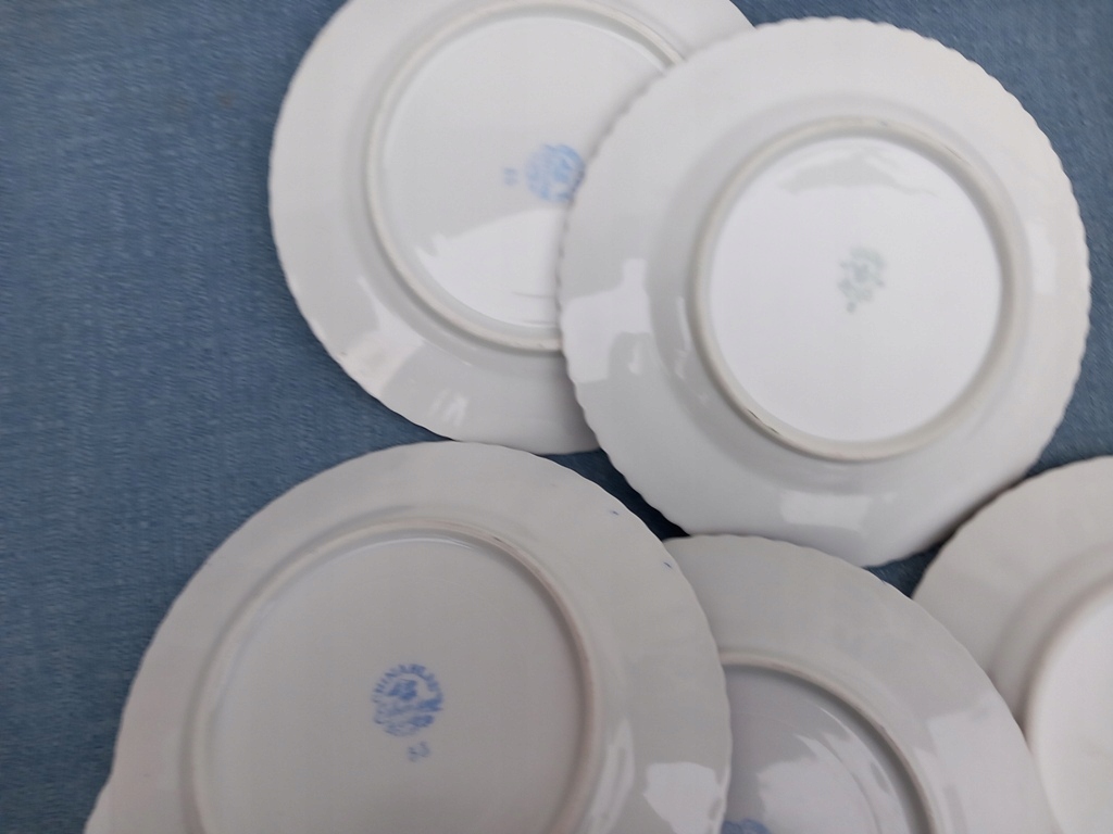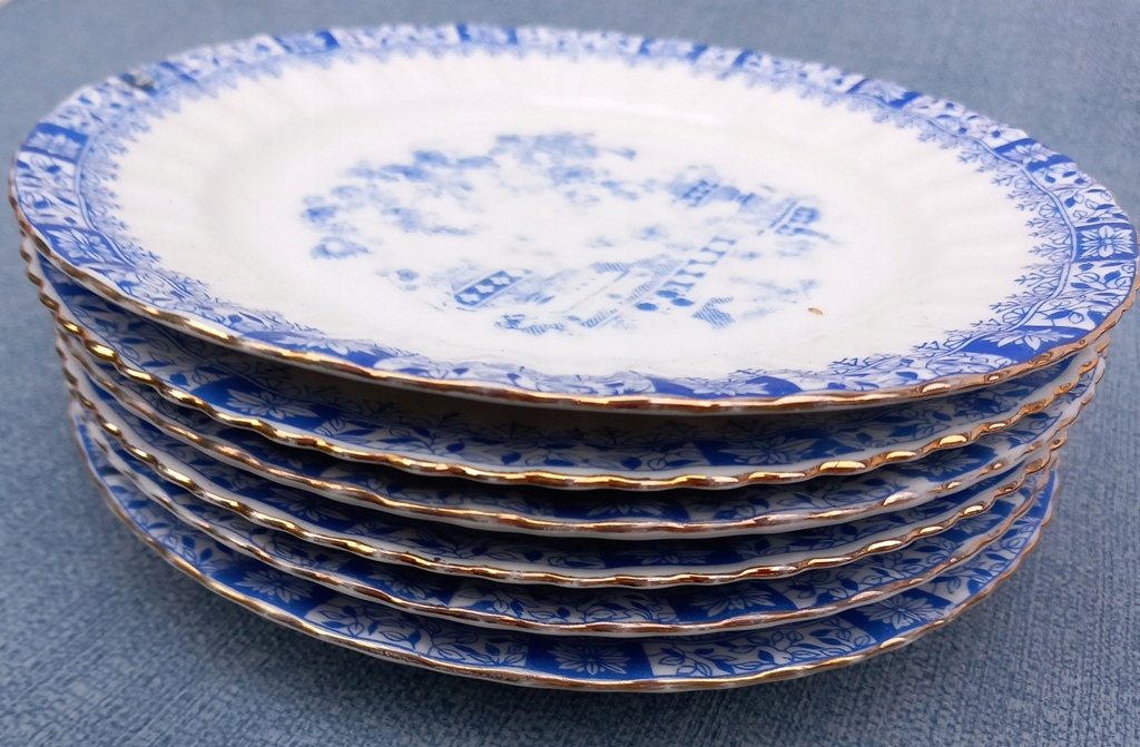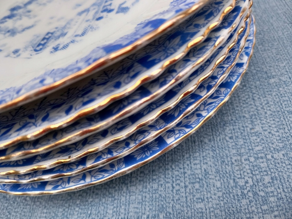 Набор из 6 десертных тарелок из фарфора синего цвета, различные подписи